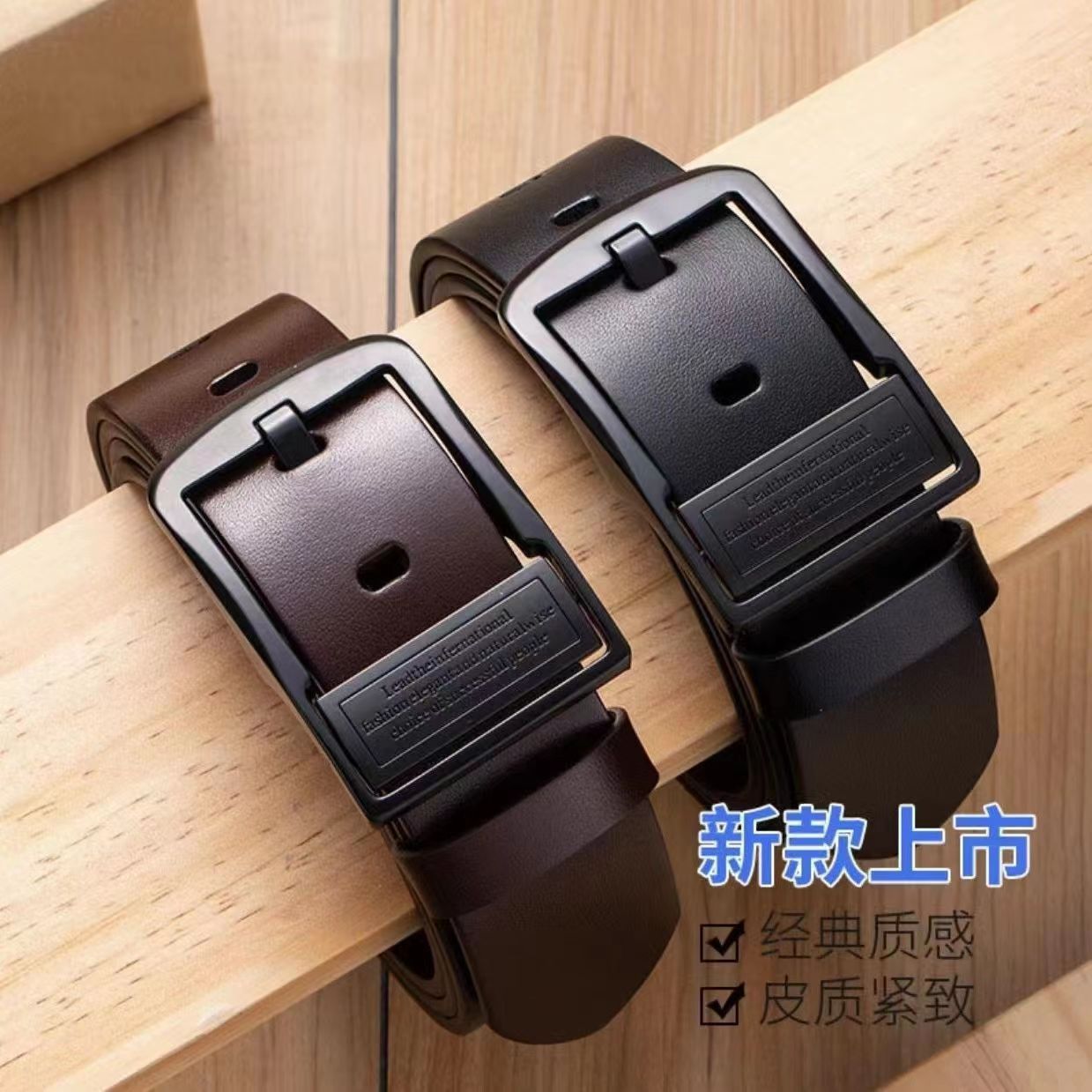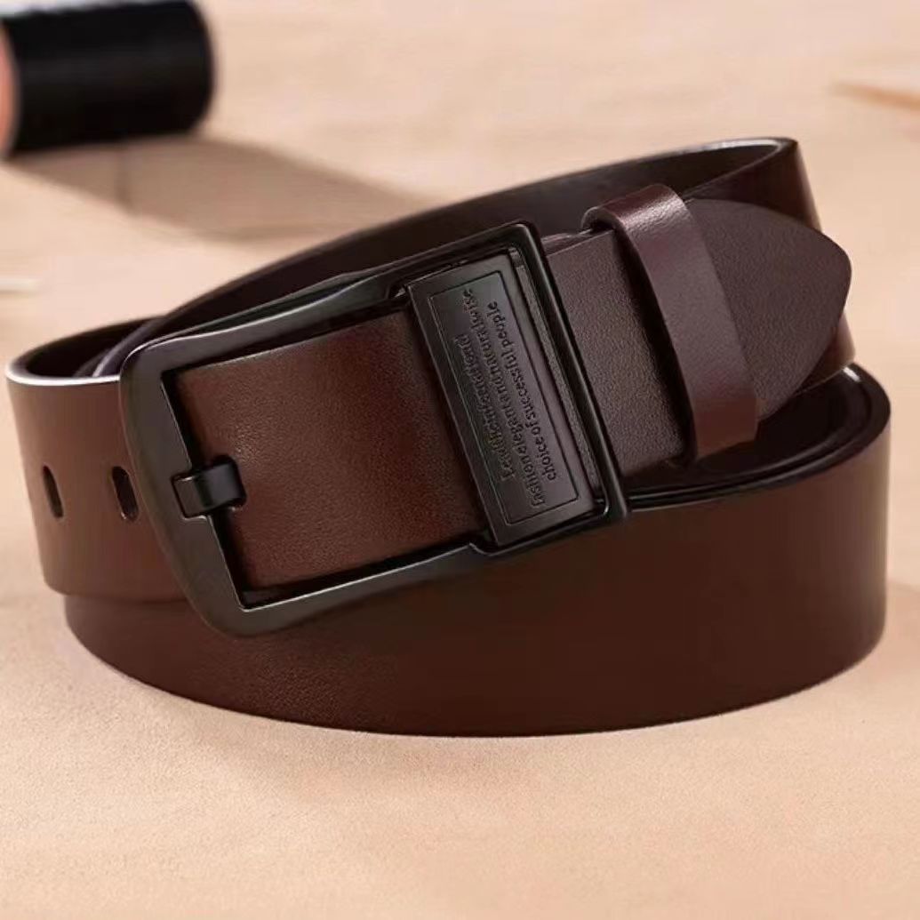 새로운 남성 벨트 정품 가죽 핀 버클 비즈니스 캐주얼 카우보이 벨트 남성 유행 간단한 중년 및 젊은 남성 벨트스토어 가기