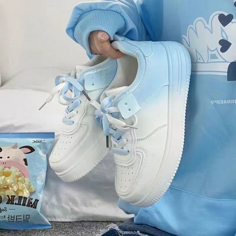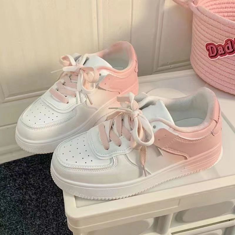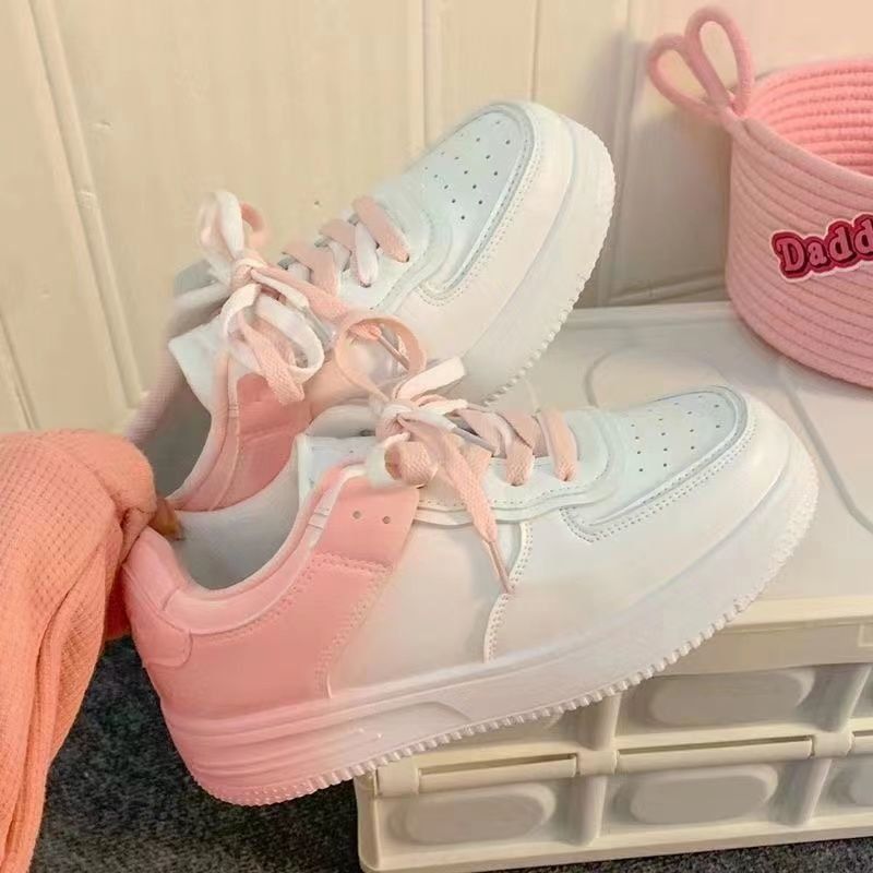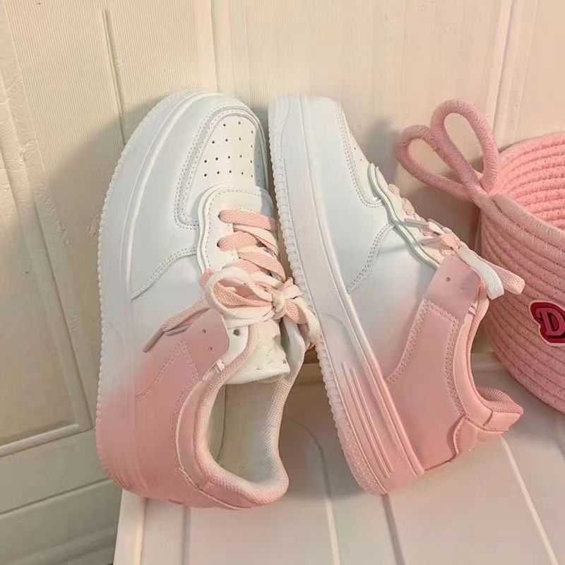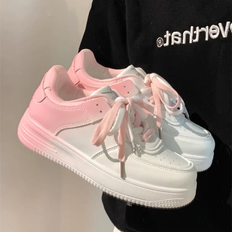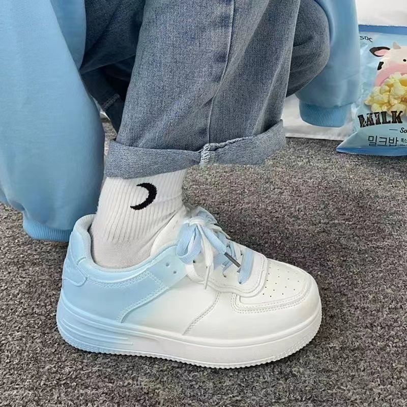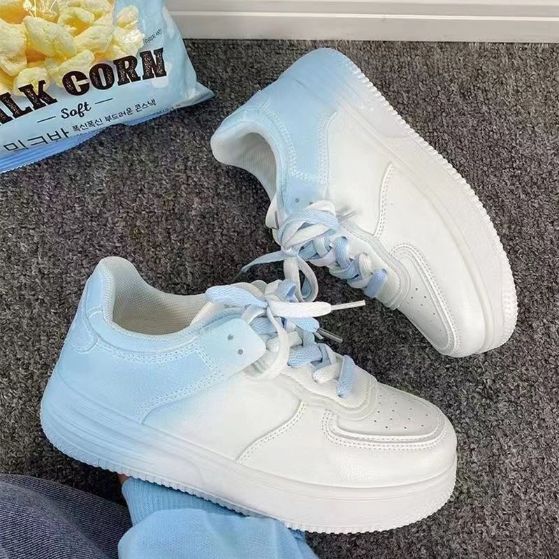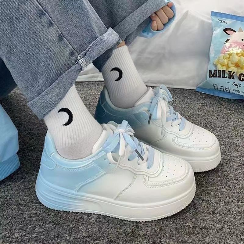 그라데이션 컬러 여성용 흰색 운동화 2025 봄 가을 신상 두꺼운 밑창 통기성 학생용 신발 다용도 스니커즈 여성용