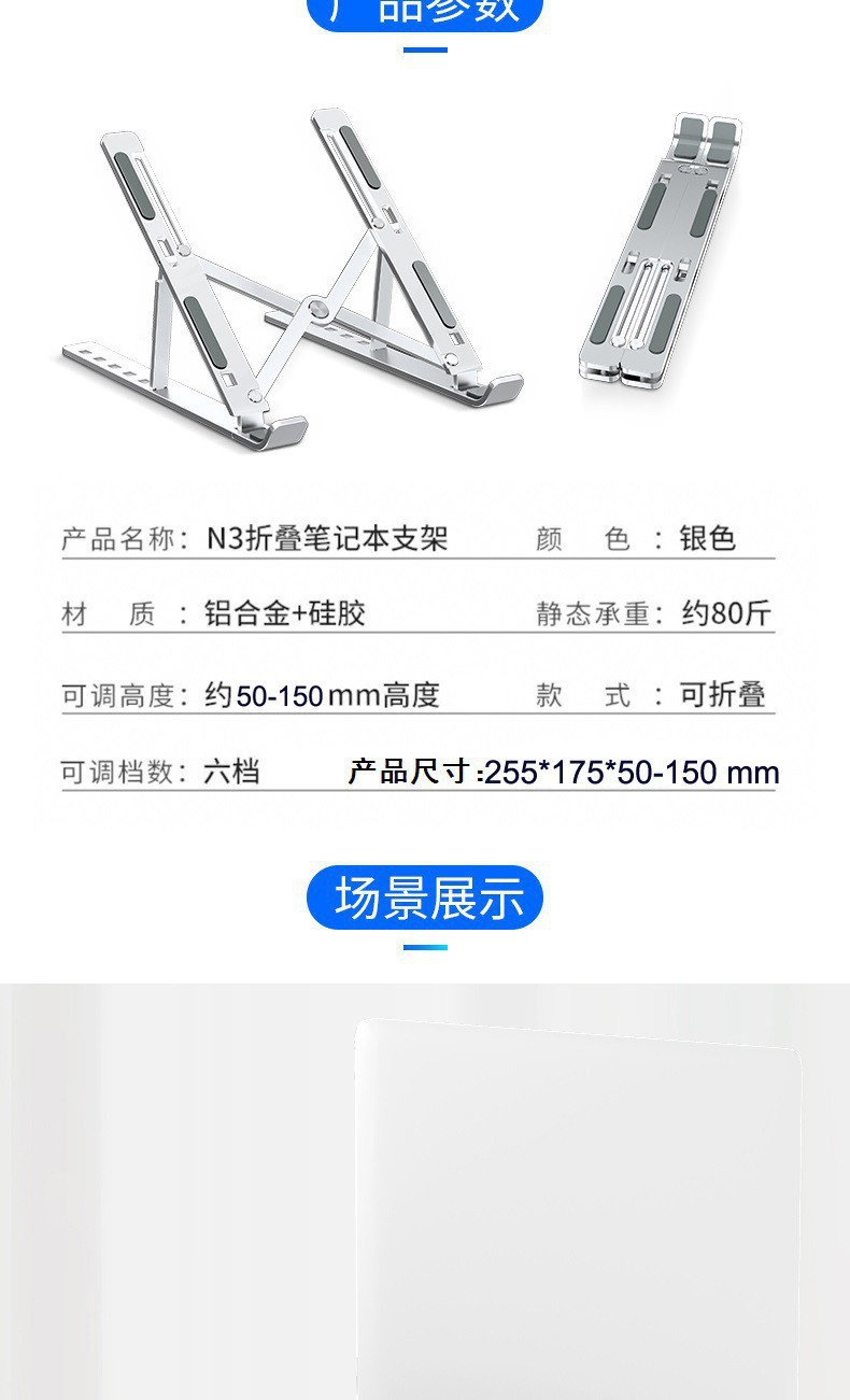 알루미늄 합금 컴퓨터 브래킷 국경 N3 노트북 브래킷 방열 휴대용 베이스 휴대용 접이식 높이 증가스토어 가기