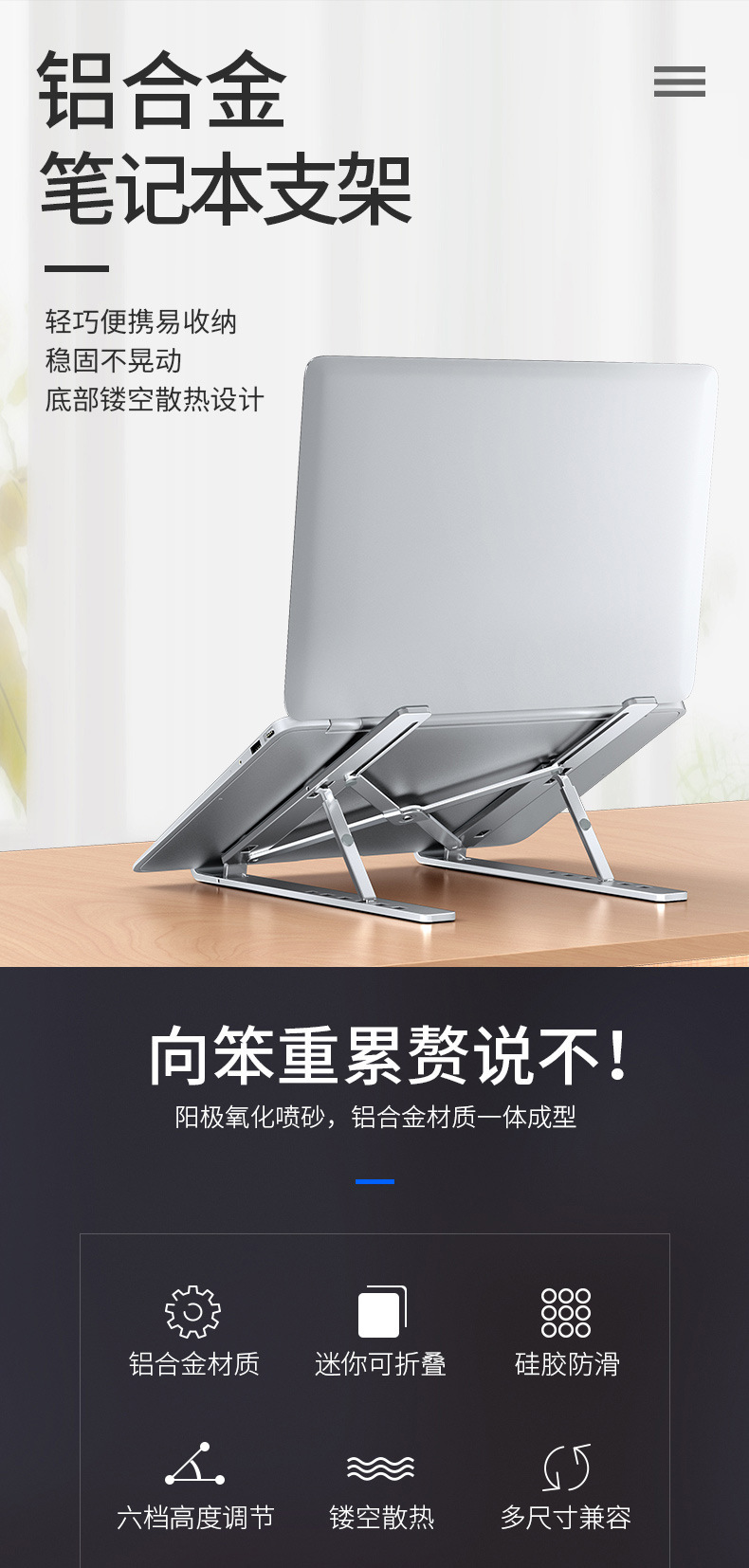 알루미늄 합금 컴퓨터 브래킷 국경 N3 노트북 브래킷 방열 휴대용 베이스 휴대용 접이식 높이 증가