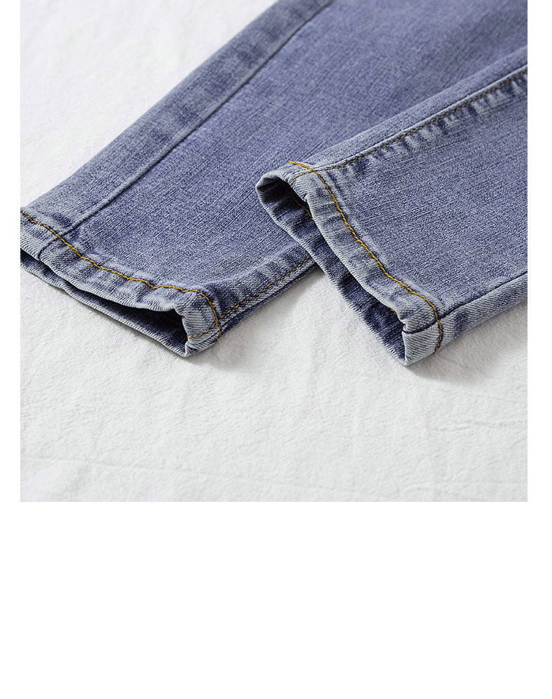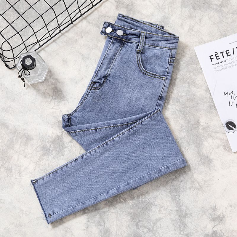 2024 가을과 겨울 새 청바지 여성용 스키니 바지 다리 긴 높은 허리 한국 스타일 플러스 사이즈 통통녀 발목 길이 바지