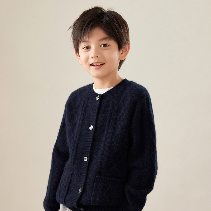 두꺼운 칠침 니트 아동용 울 가디건 2024 가을 겨울 신상 중대형 아동용 니트웨어 남녀 아동용 코트스토어 가기