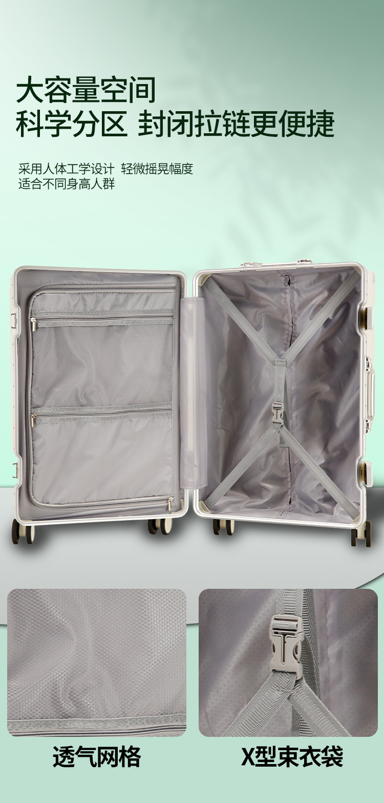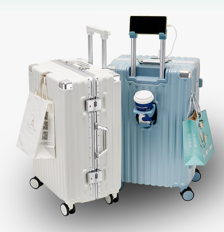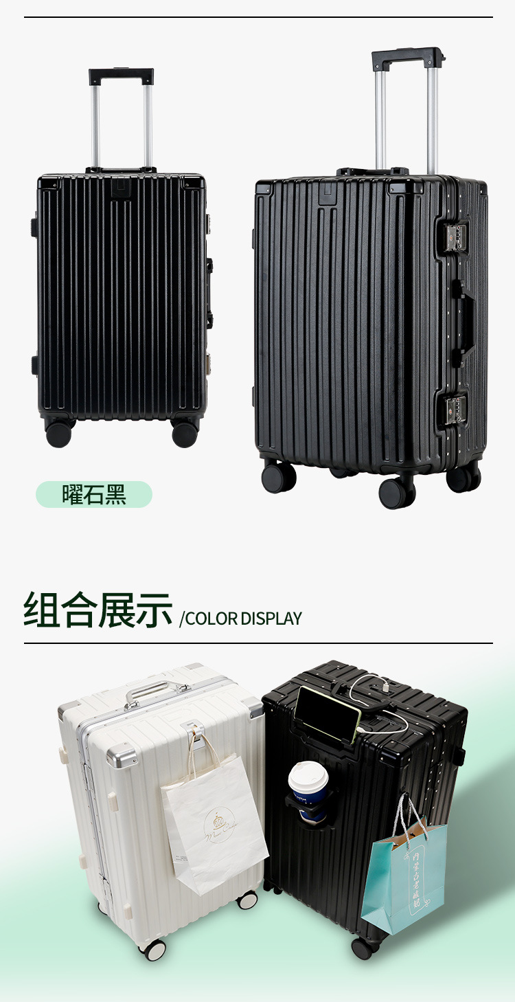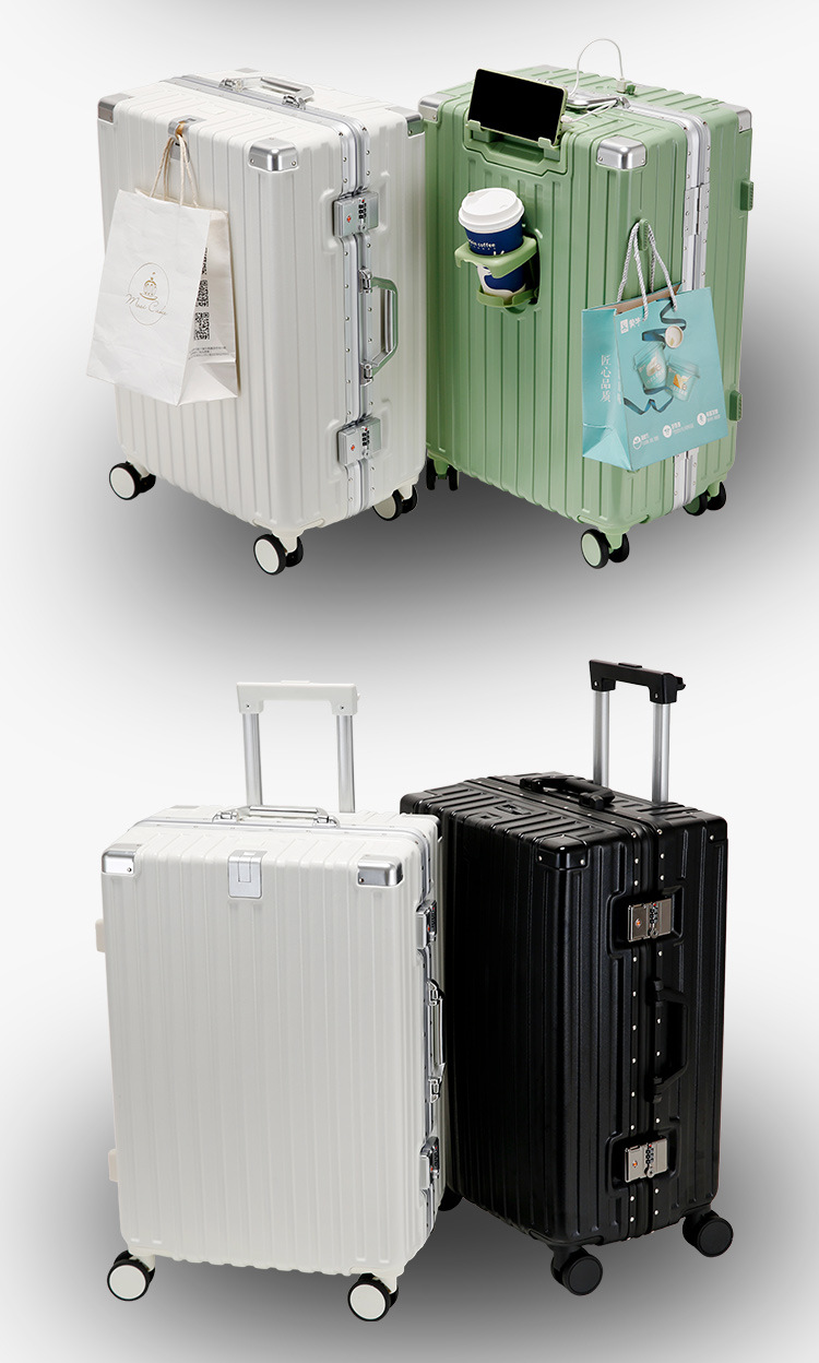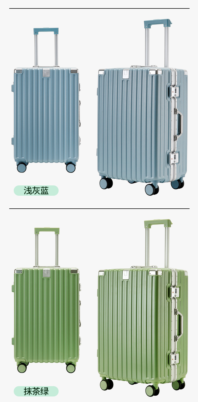 새로운 알루미늄 프레임 수하물 비밀번호 잠금 강화 강력하고 내구성이 뛰어난 대용량 가방 트롤리 케이스 암호 표시기 상자스토어 가기