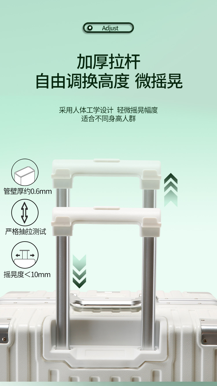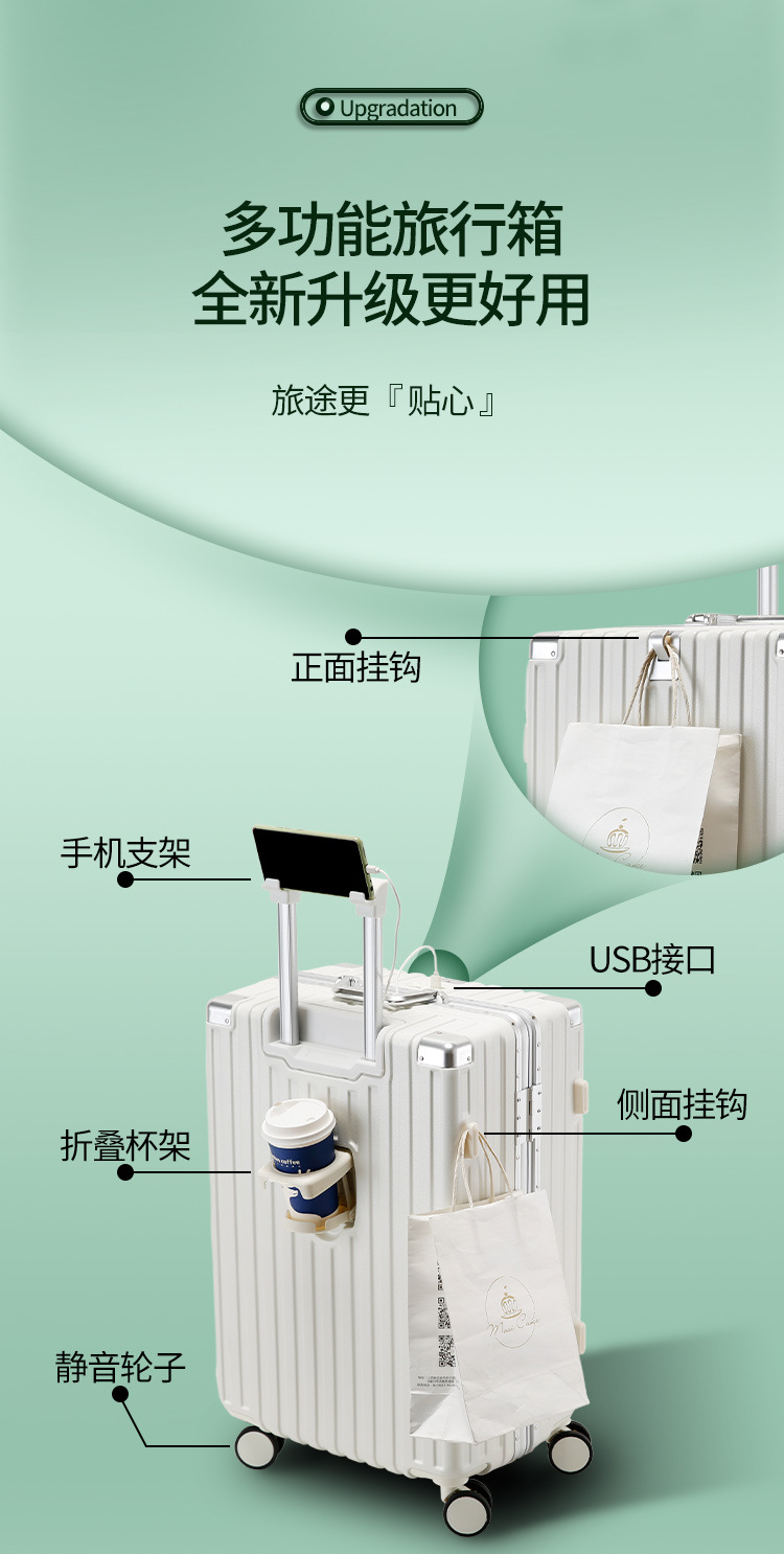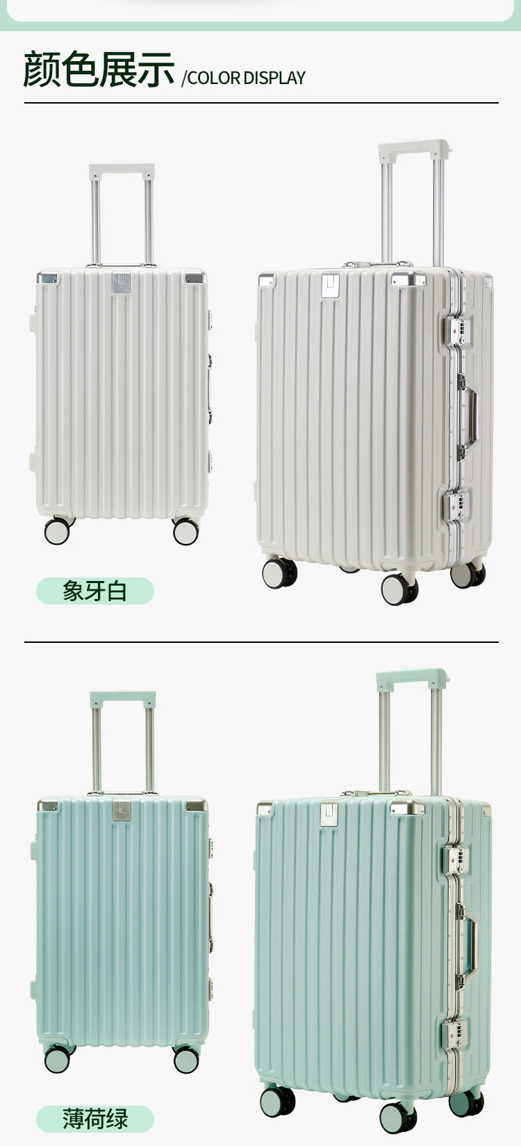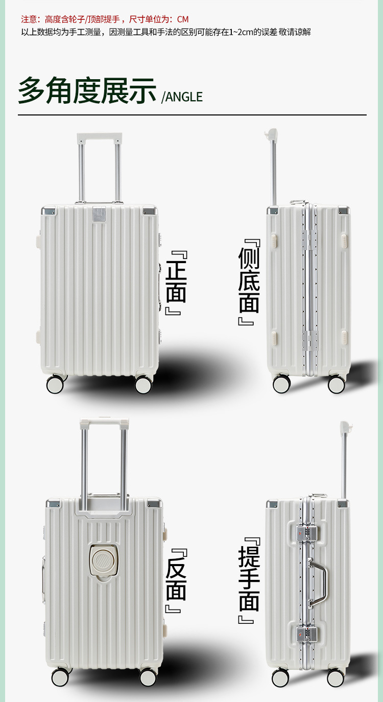 새로운 알루미늄 프레임 수하물 비밀번호 잠금 강화 강력하고 내구성이 뛰어난 대용량 가방 트롤리 케이스 암호 표시기 상자스토어 가기