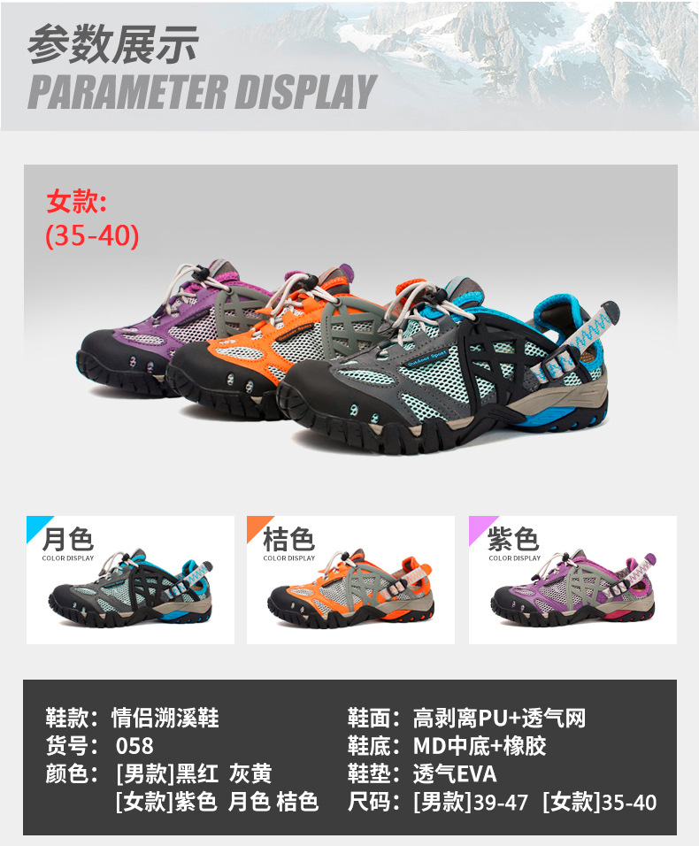 여름 야외 커플 추적 신발 남성과 여성의 수륙 양용 신발 빠른 건조 하이킹 신발 플러스 사이즈 45 46 47