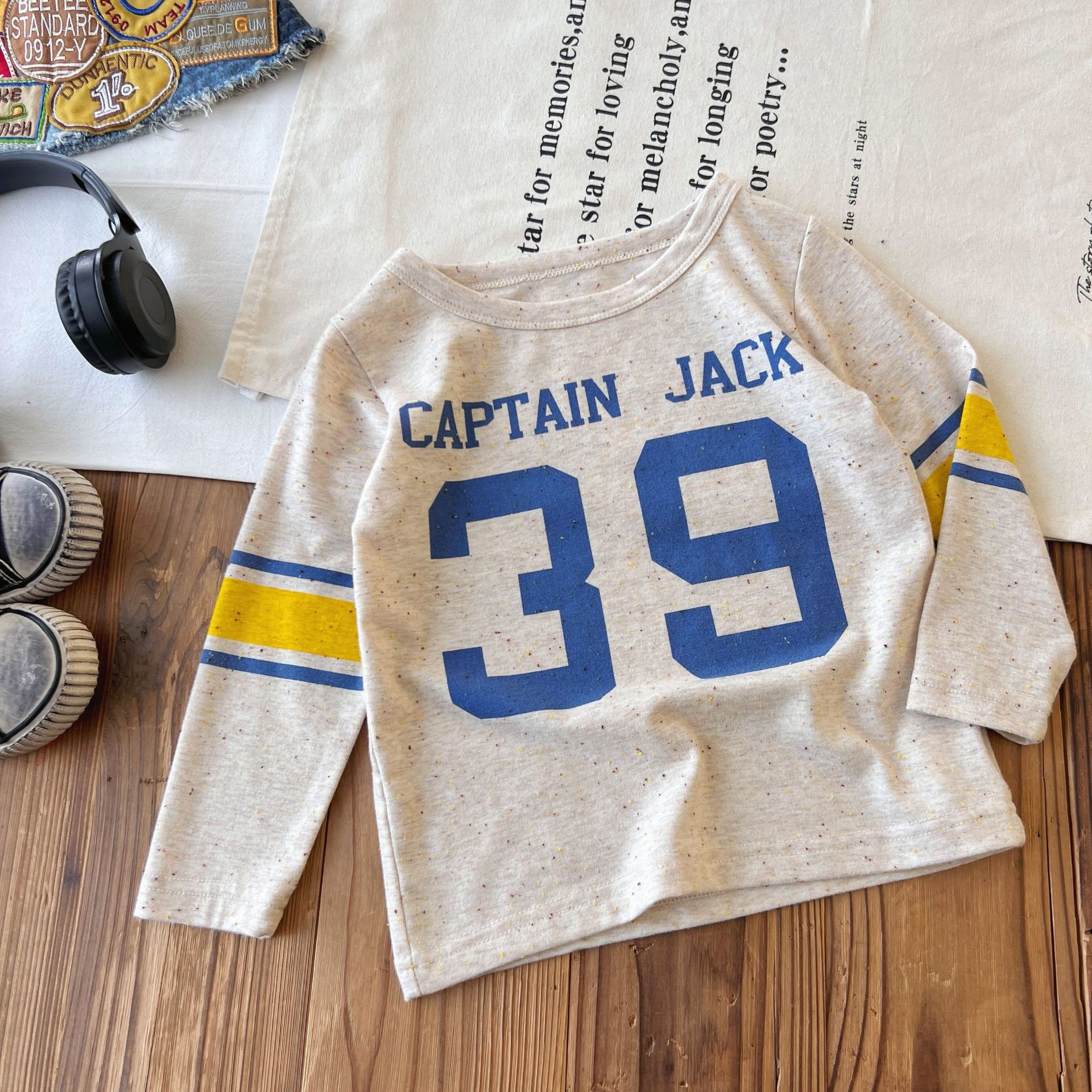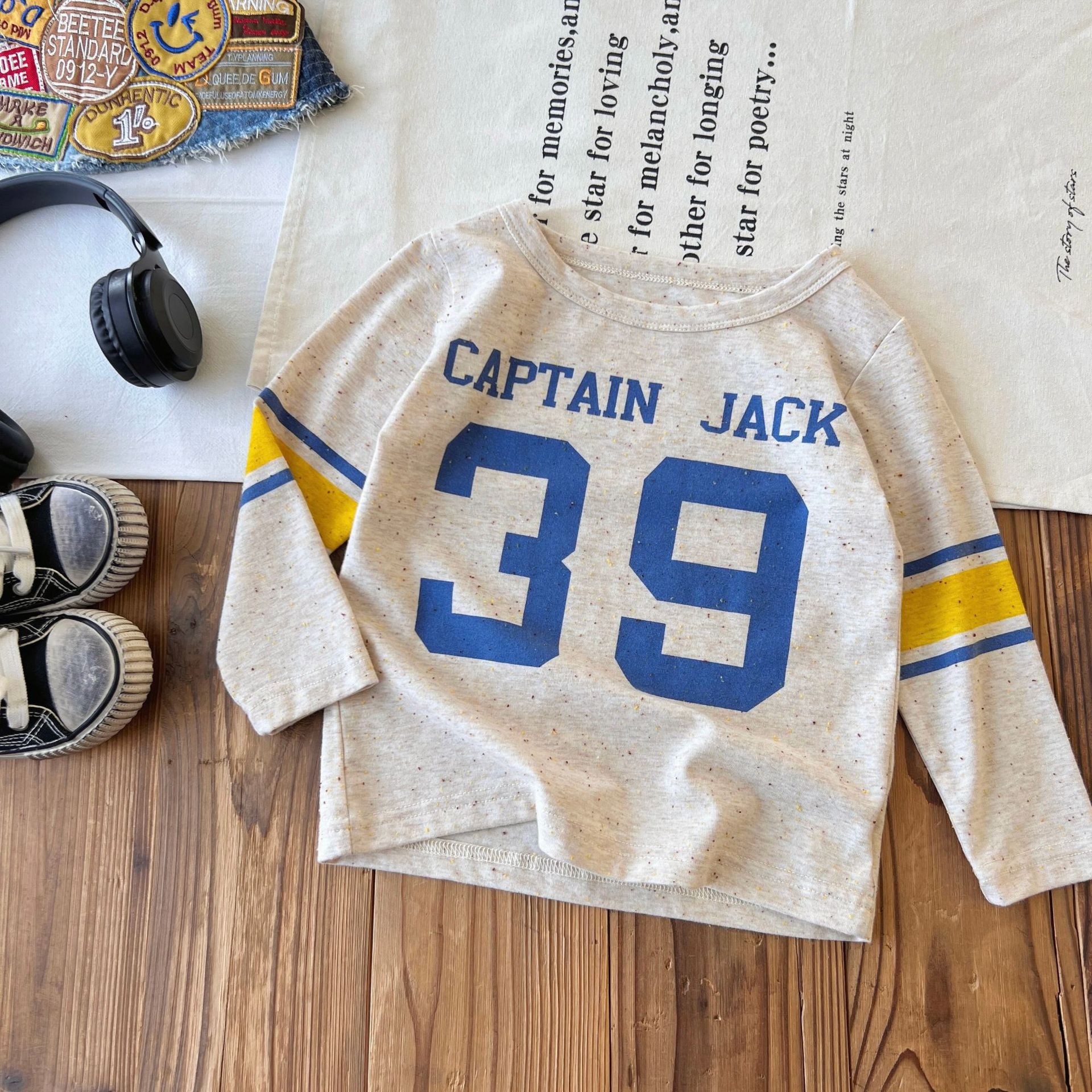[재고] 일본 중세 조수 DD 어린이 편지 색면 긴소매 티셔츠 재킷