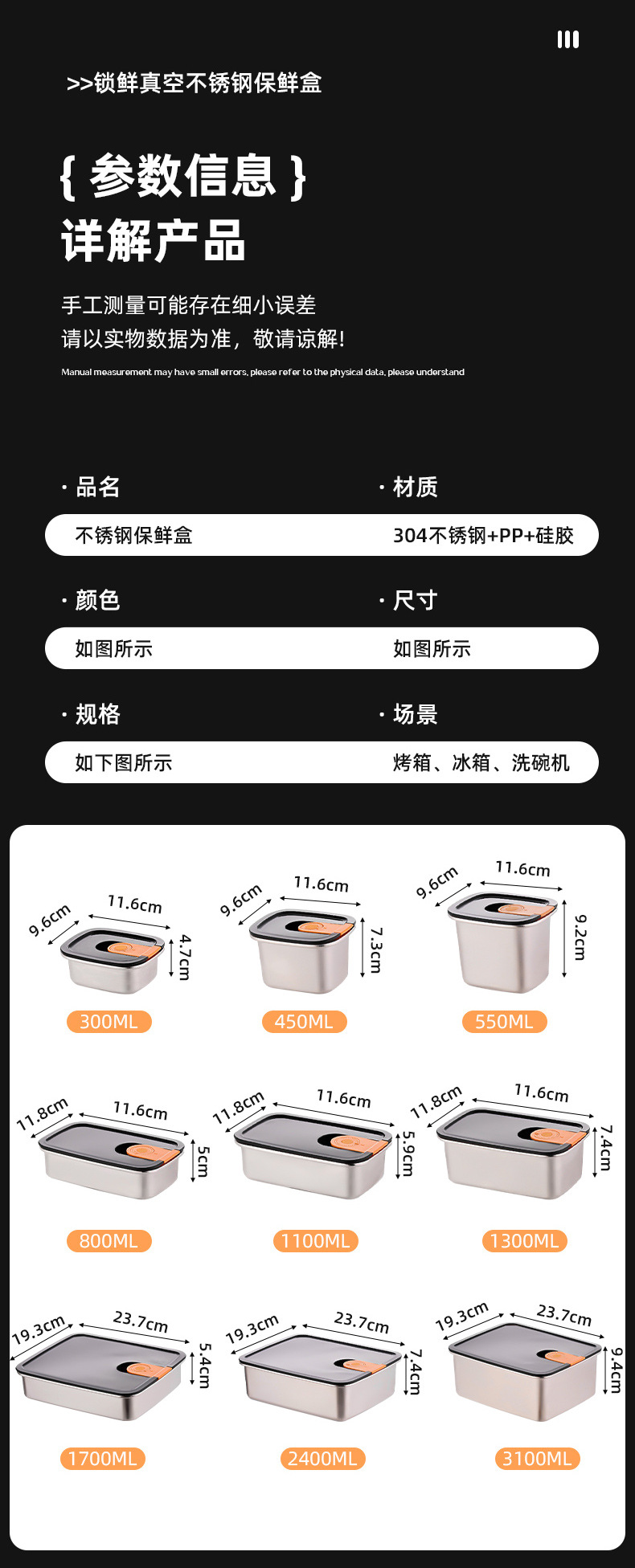 304 스테인리스 보존 상자 음식 급료 도시락 봉인 상자 식사 도시락 냉장고 특별한 과일 도시락