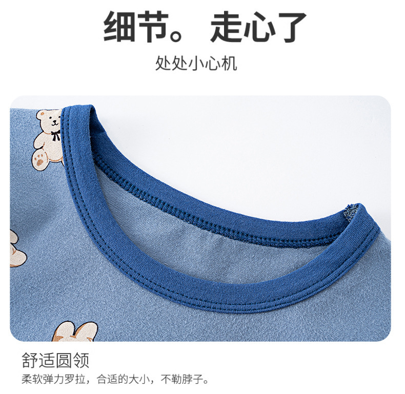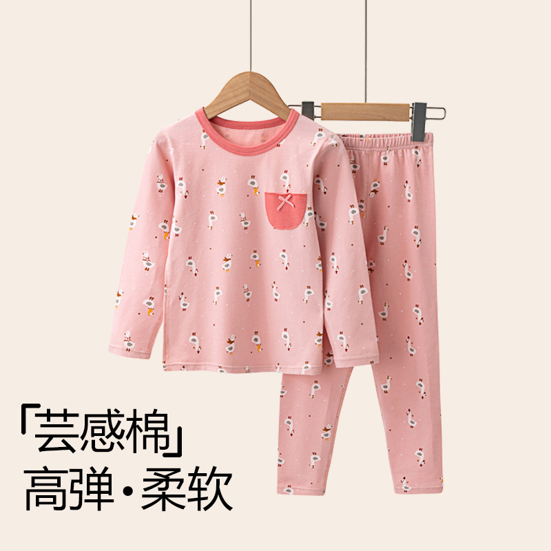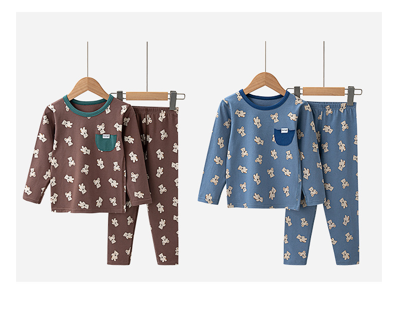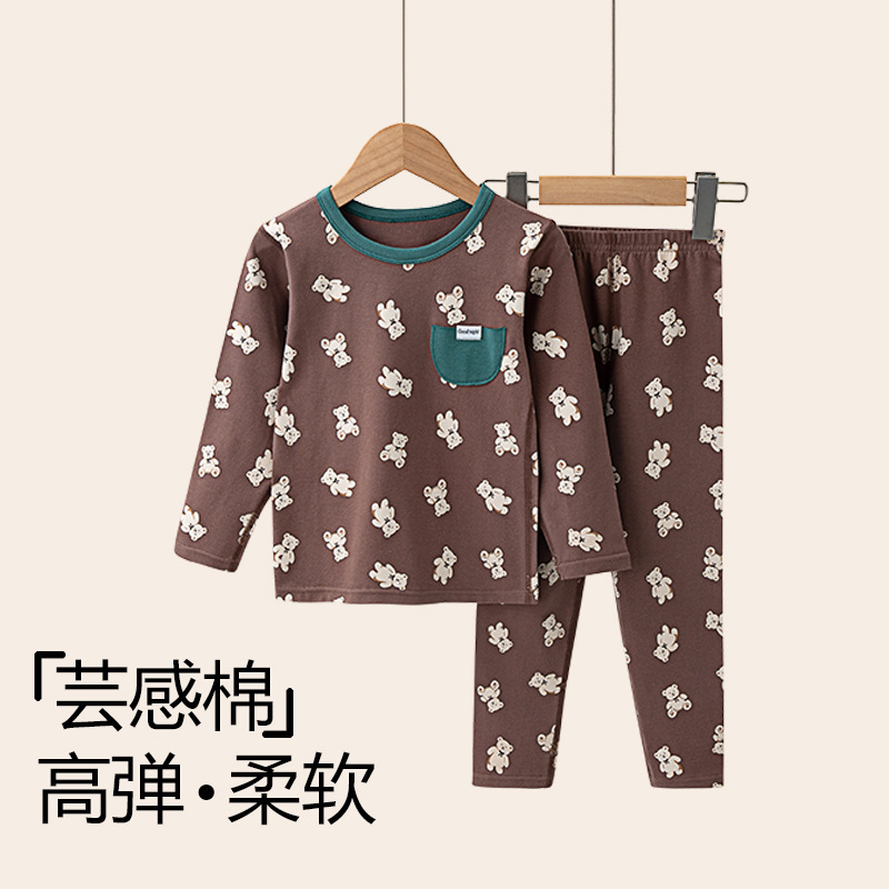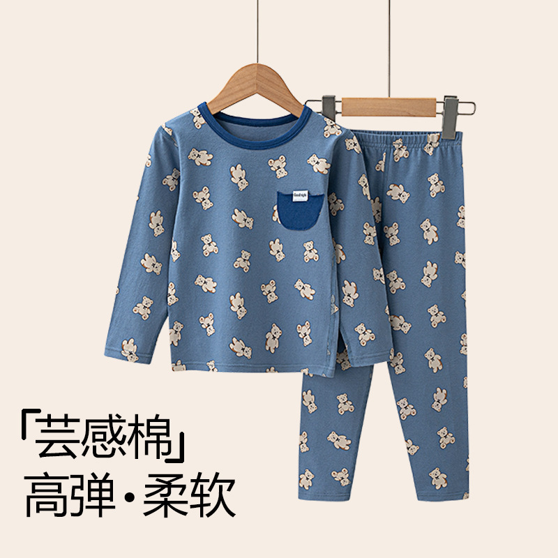 가을과 겨울 2024 중소형 소년 소녀를위한 어린이 가을 옷과 바지 코튼 스웨터 만화 크루 넥 속옷 세트 홈 옷스토어 가기