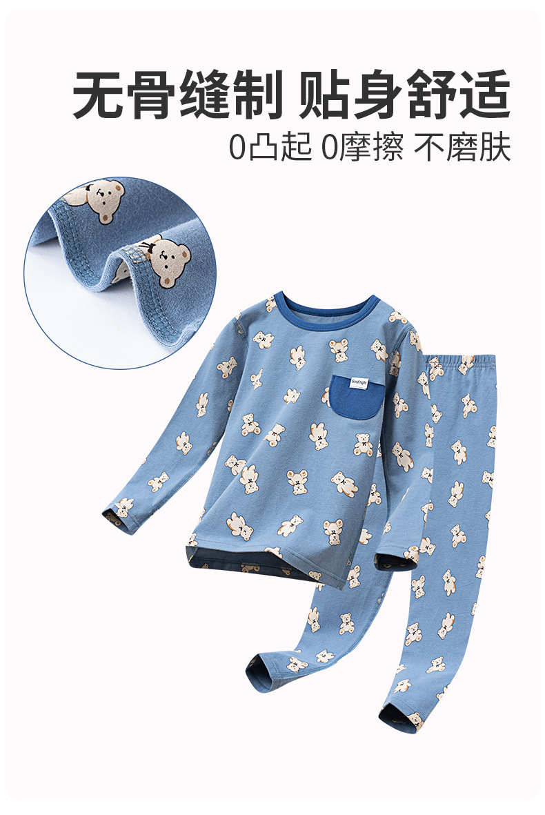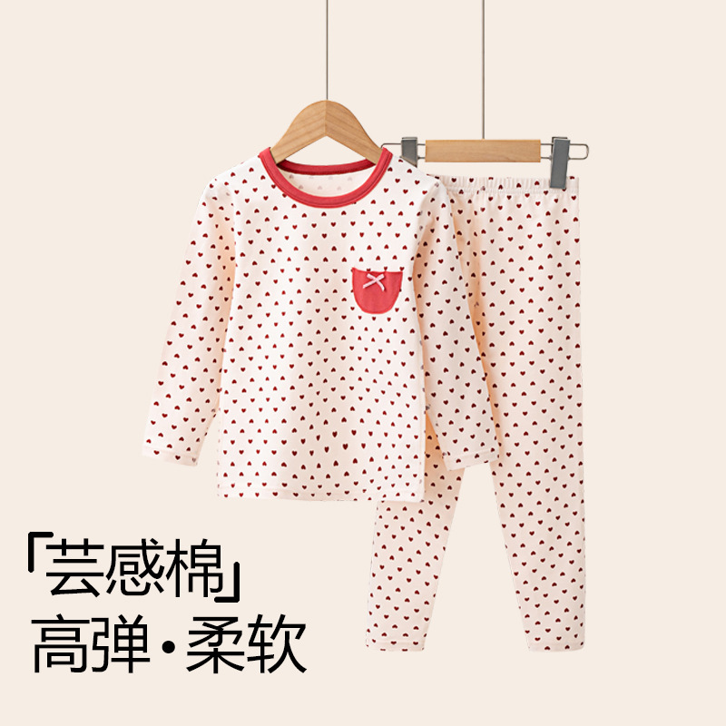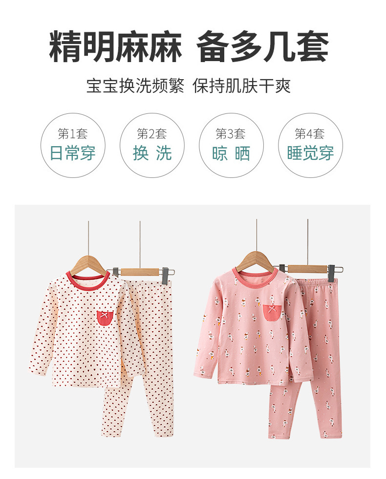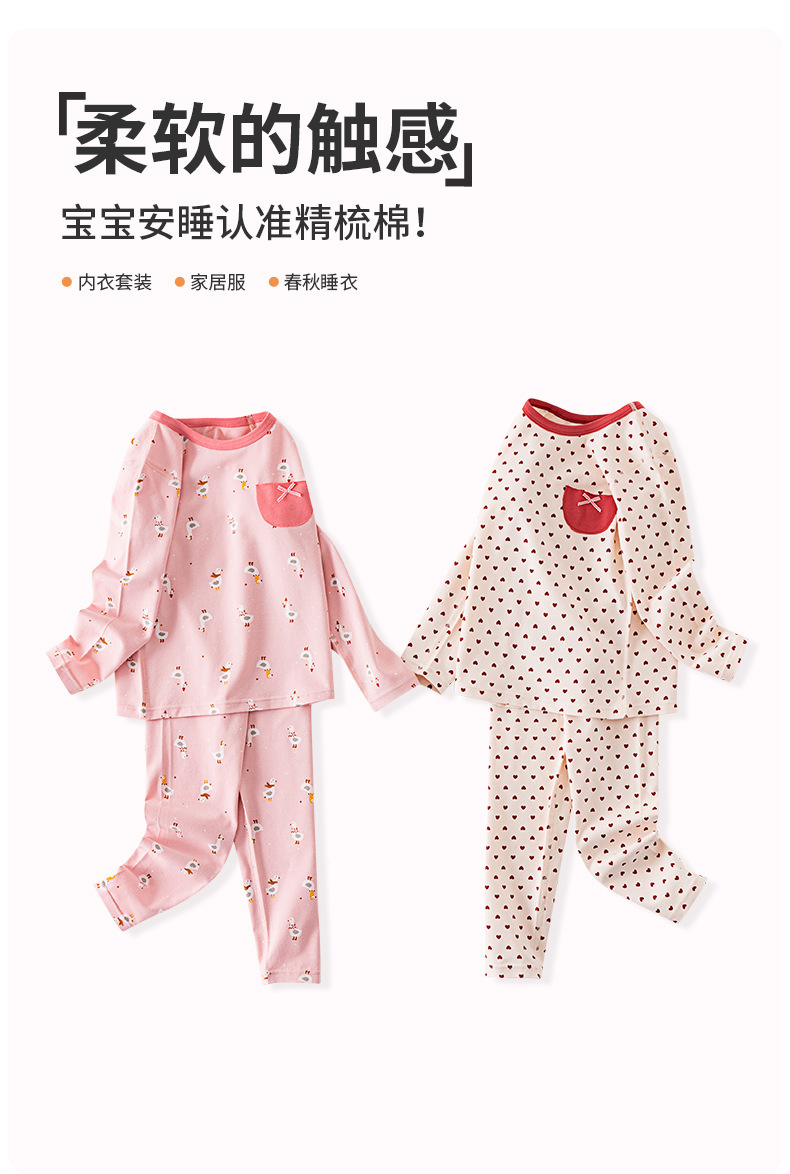 가을과 겨울 2024 중소형 소년 소녀를위한 어린이 가을 옷과 바지 코튼 스웨터 만화 크루 넥 속옷 세트 홈 옷스토어 가기