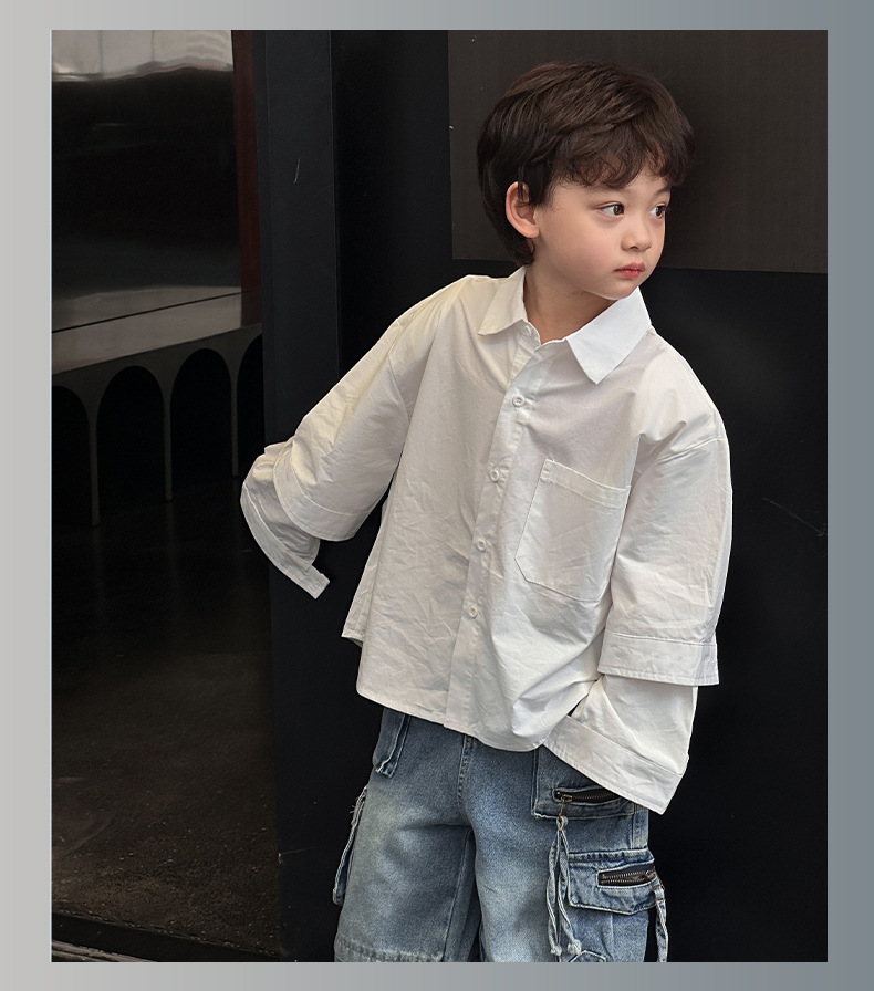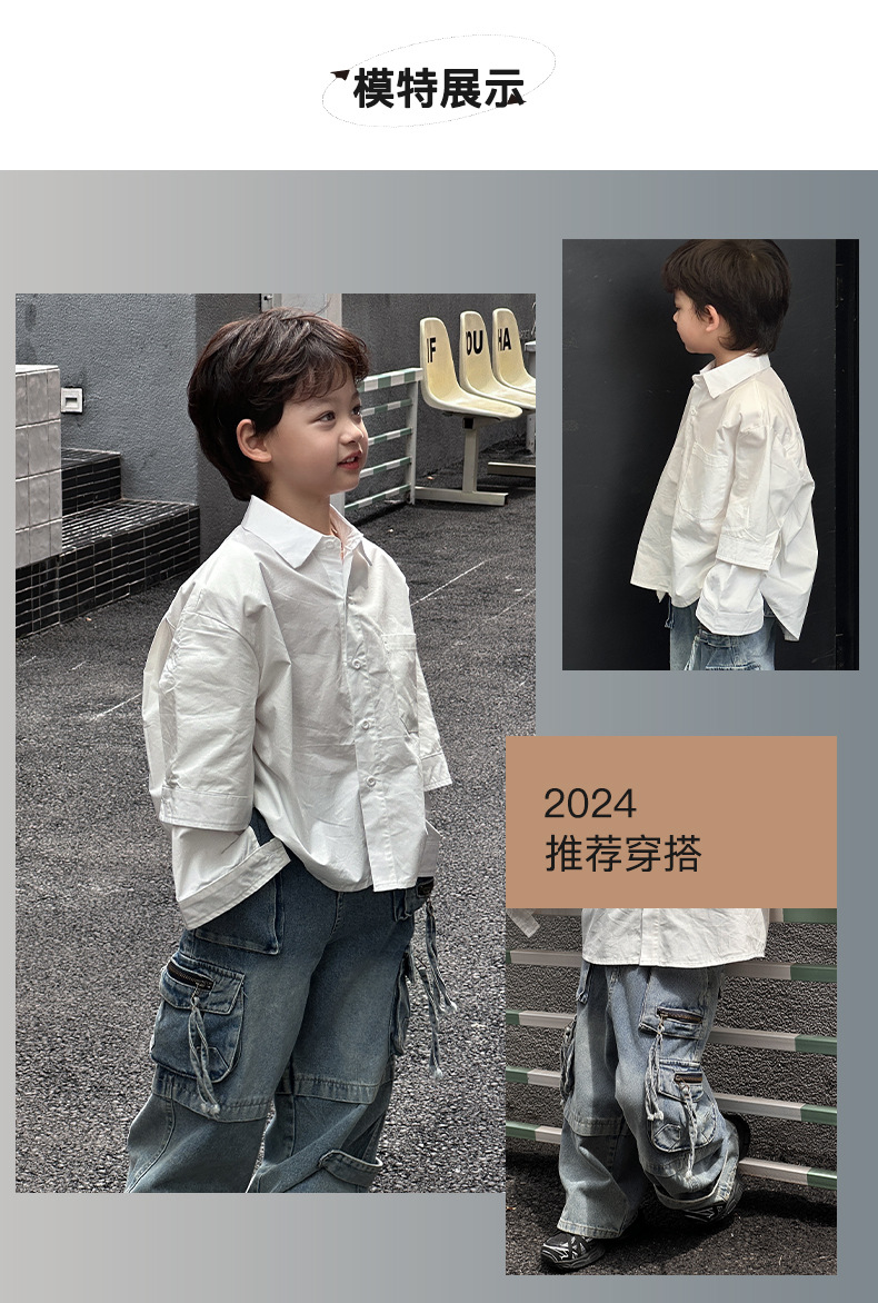 소년 패션 긴 소매 셔츠 2024 가을 새로운 어린이 캐주얼 옷깃 셔츠 어린이 봄과 가을 탑 트렌디스토어 가기