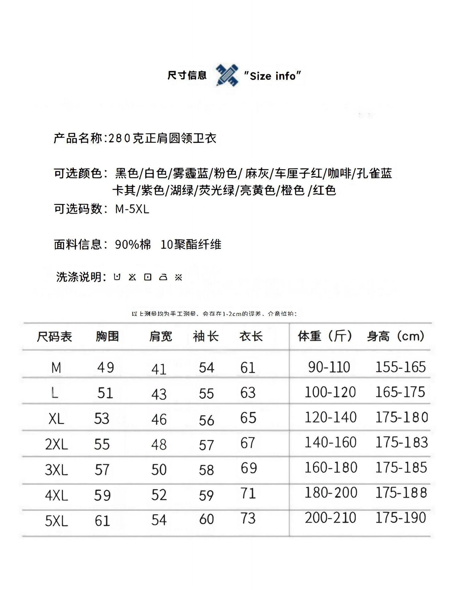 280g 헤비 코튼 크루 넥 남성 스웨트 셔츠 가을과 겨울 느슨한 솔리드 컬러 커플 패션 브랜드 터틀넥 클래스 의류 대외 무역 맞춤형