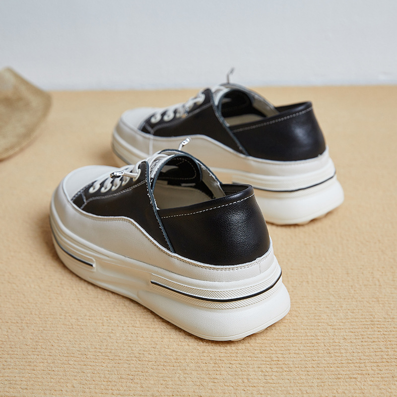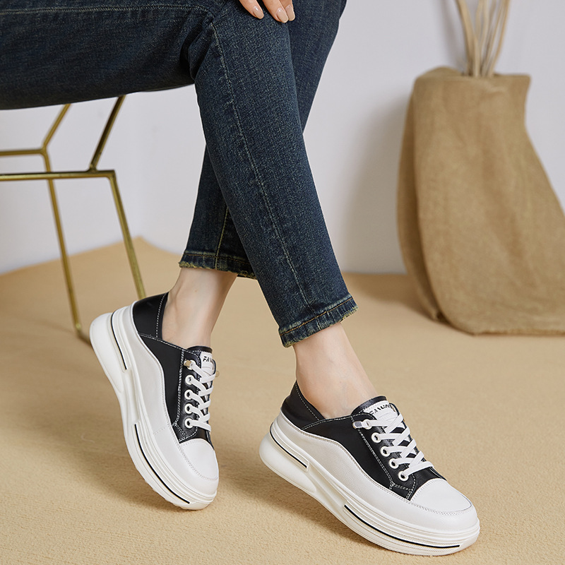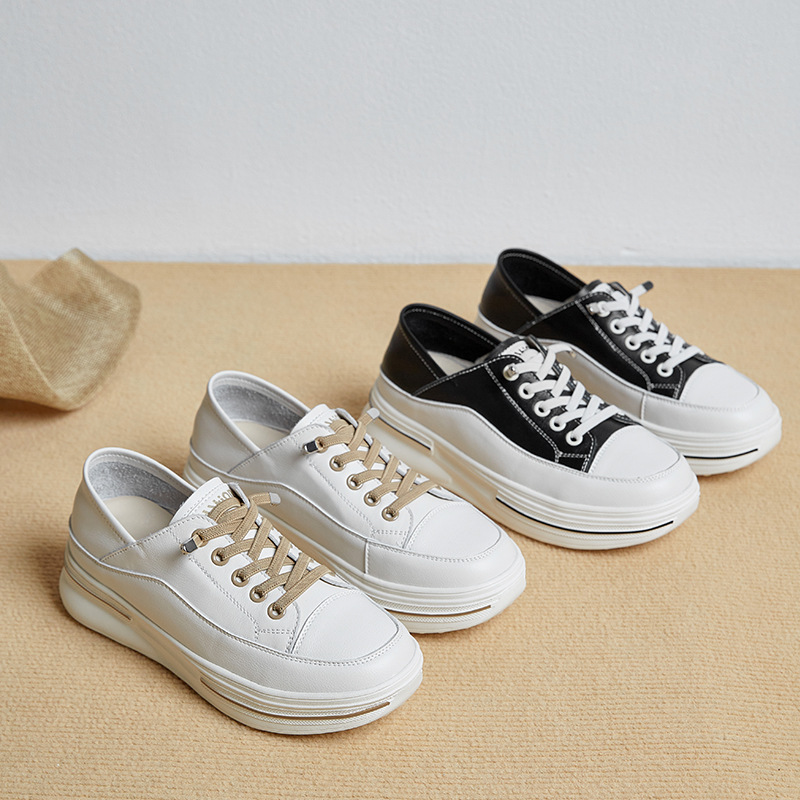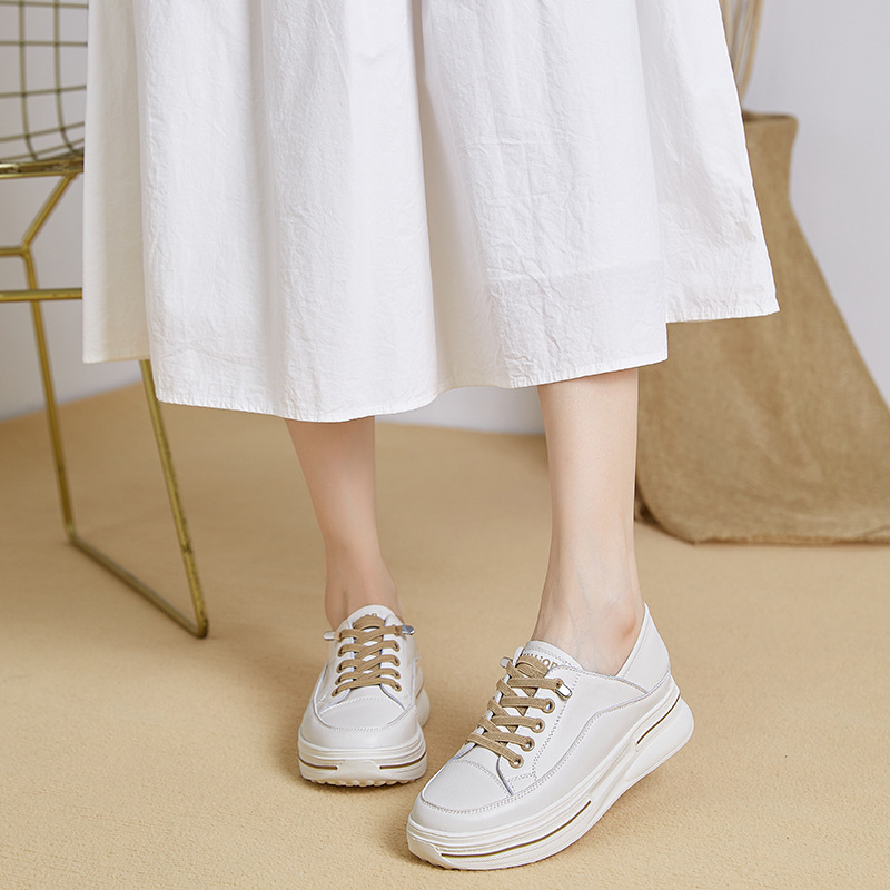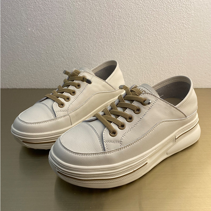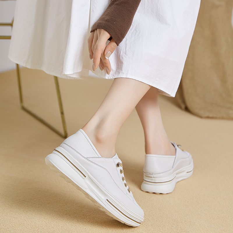1 층 소 가죽 탄성 밴드 슬립 온 로퍼 여성의 2024 새로운 두꺼운 밑창 투웨어 작은 흰색 신발 캐주얼 운동화