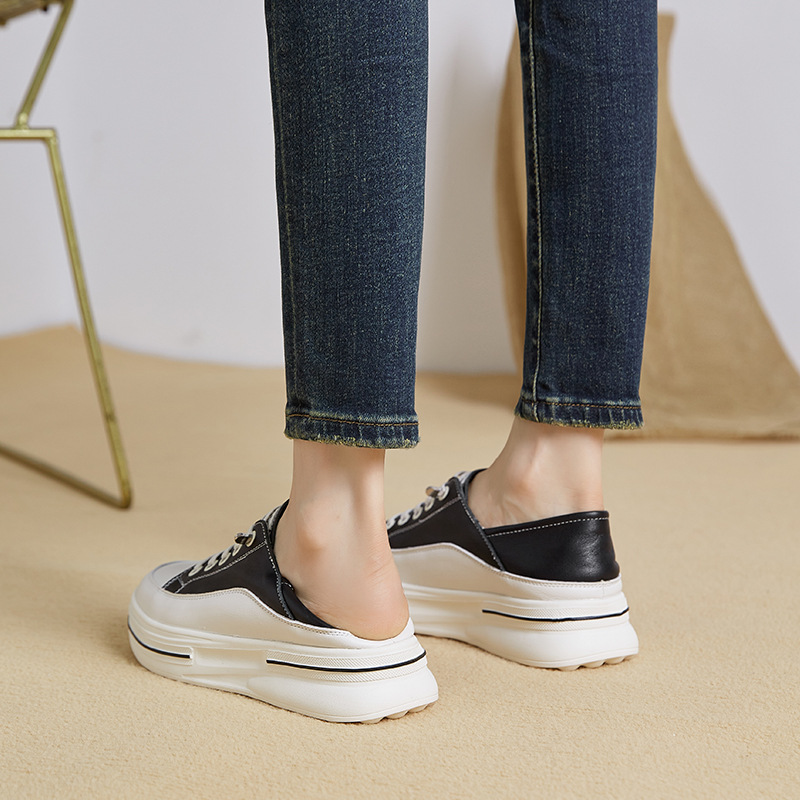 1 층 소 가죽 탄성 밴드 슬립 온 로퍼 여성의 2024 새로운 두꺼운 밑창 투웨어 작은 흰색 신발 캐주얼 운동화스토어 가기