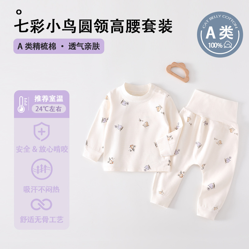 아기 세트 기지 잠옷 두 조각 봄과 가을 코튼 소년과 소녀 잠옷 유아 높은 허리 세트스토어 가기