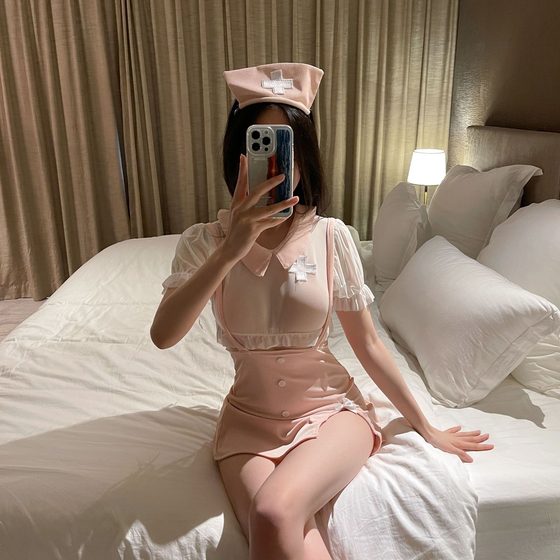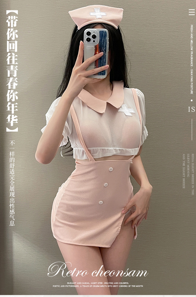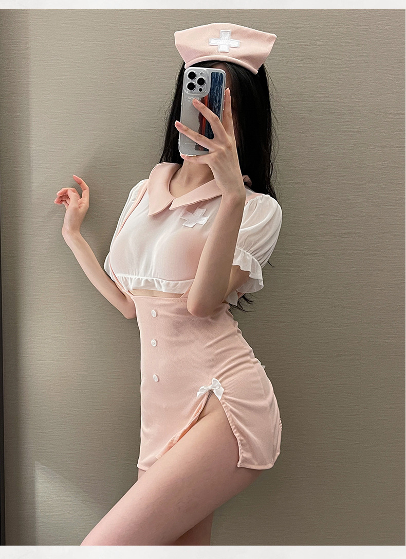 섹시한 란제리 유혹 간호사 균일 한 관점 소프트 원사 분할 엉덩이 스커트 작은 가슴은 큰 열정 세트