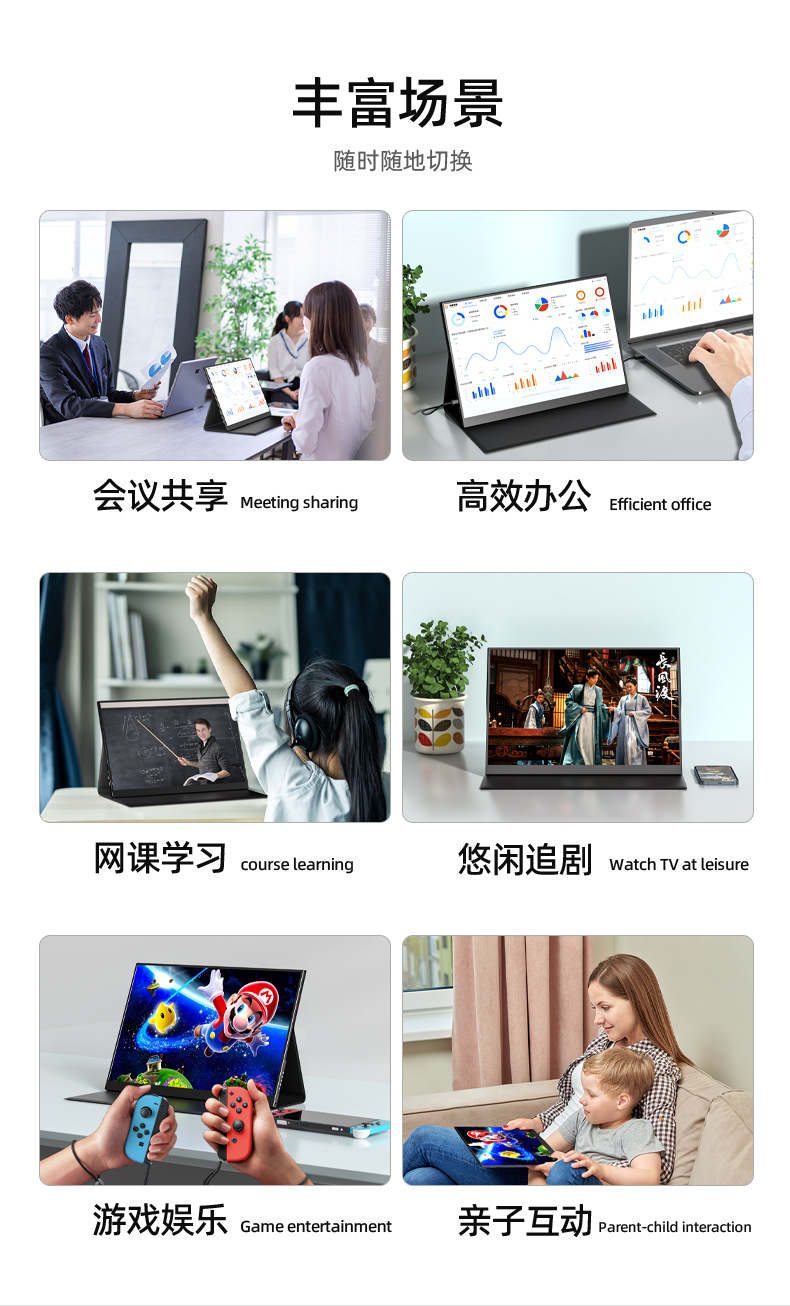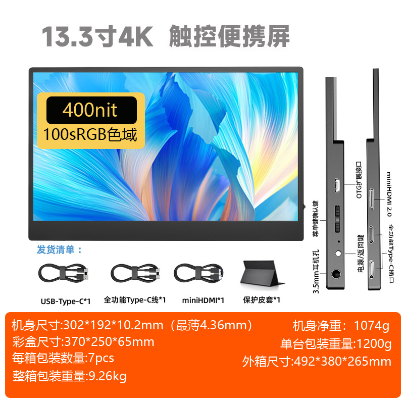 13.3 인치 터치 스크린 4K 휴대용 디스플레이 PS5 휴대 전화 확장 화면 스위치 외부 컴퓨터 서브 스크린