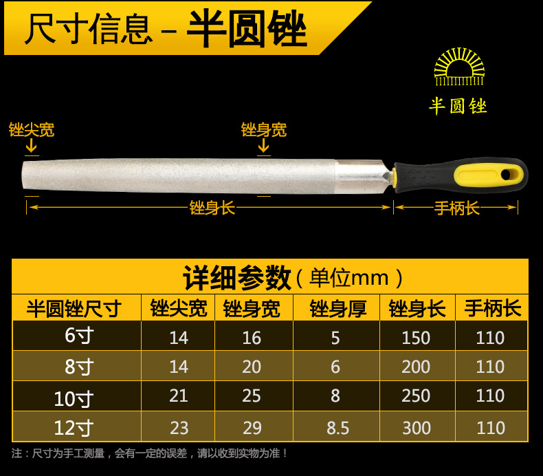 • 6inch 다이아몬드 줄 반원형 줄 1개