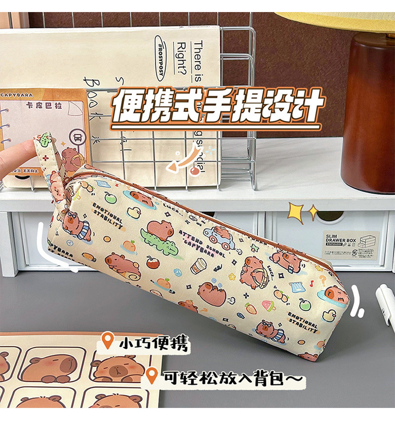 Capibala 연필 케이스 귀여운 capybara 문구 가방 학생 만화 대용량 문구 저장 가방 연필 케이스 도매스토어 가기