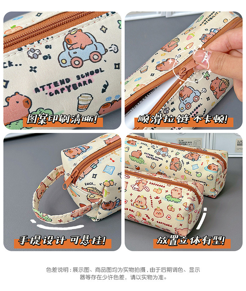Capibala 연필 케이스 귀여운 capybara 문구 가방 학생 만화 대용량 문구 저장 가방 연필 케이스 도매