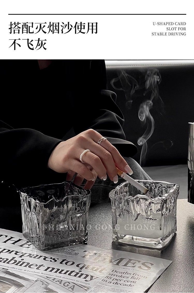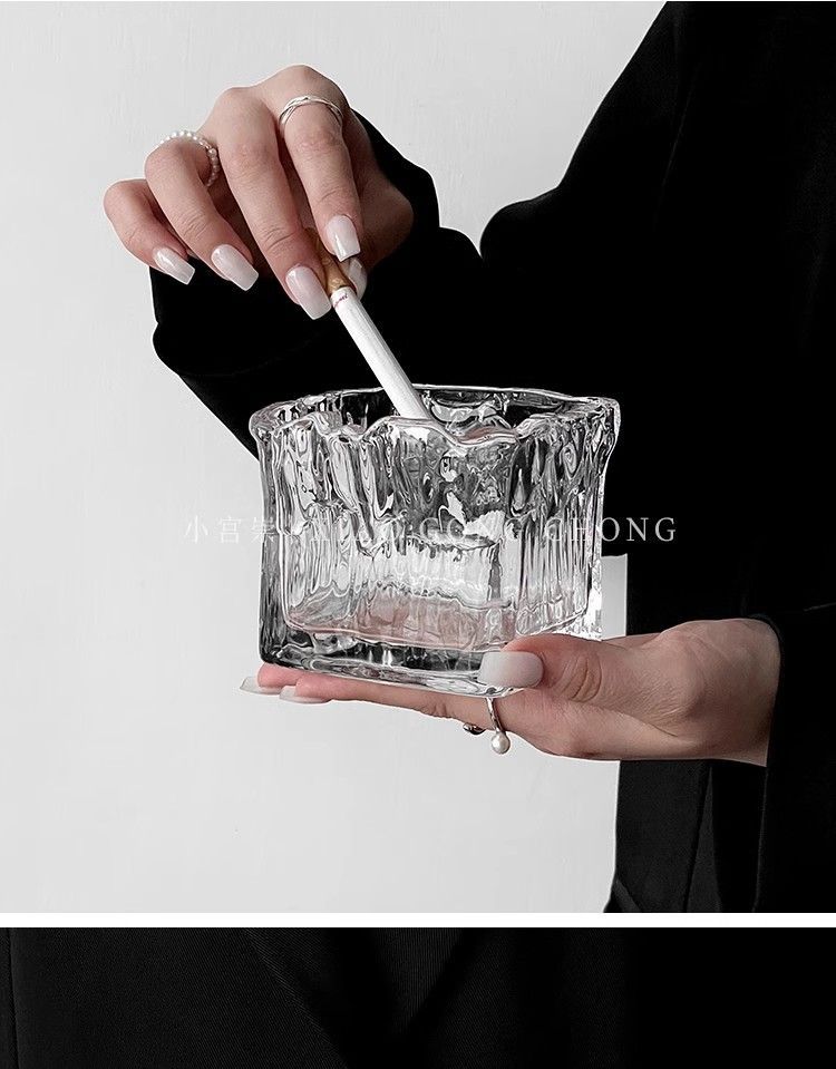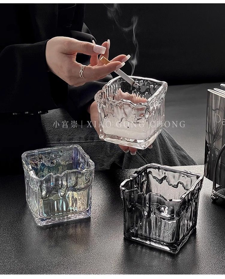 유리 크리에이티브 인 라이트 럭셔리 빙하 패턴 패션 재떨이 안티 플라이 애쉬 보울 가정용 거실 사무실 담배 컵스토어 가기