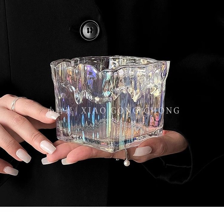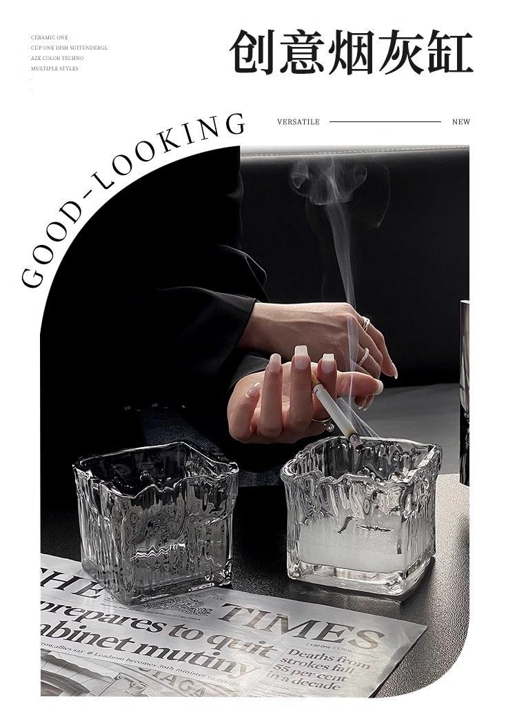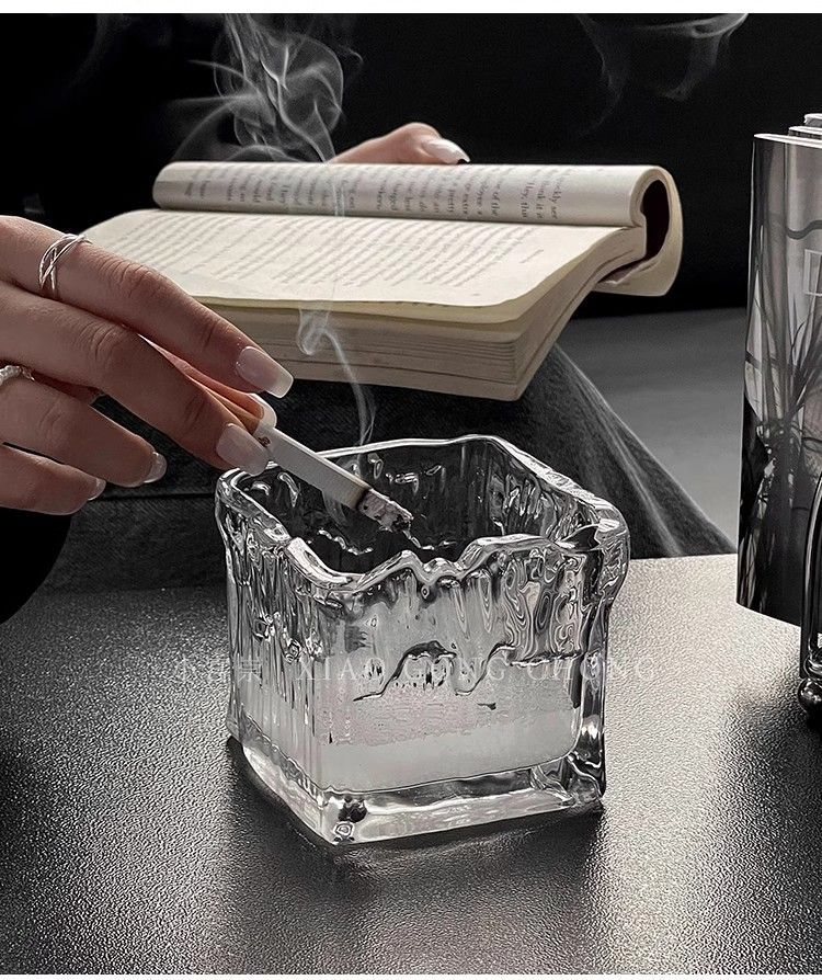 유리 크리에이티브 인 라이트 럭셔리 빙하 패턴 패션 재떨이 안티 플라이 애쉬 보울 가정용 거실 사무실 담배 컵