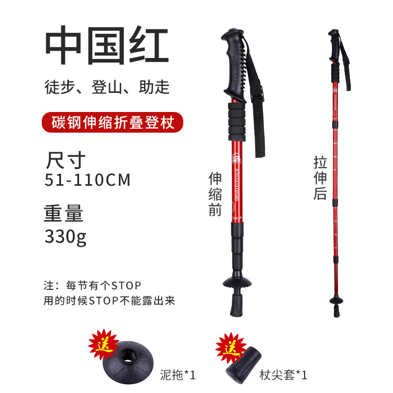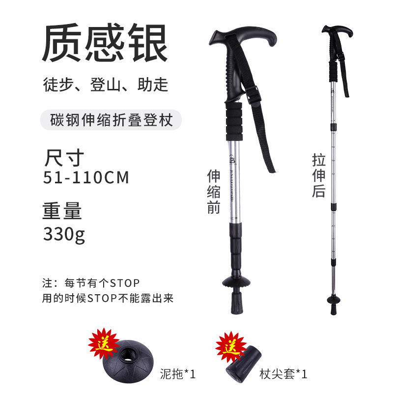국경 간 등산 직원 알루미늄 합금 편리한 망원경 직원 3 섹션 4 섹션 직선 손잡이 곡선 손잡이 등산 직원 T 손잡이 하이킹 직원스토어 가기