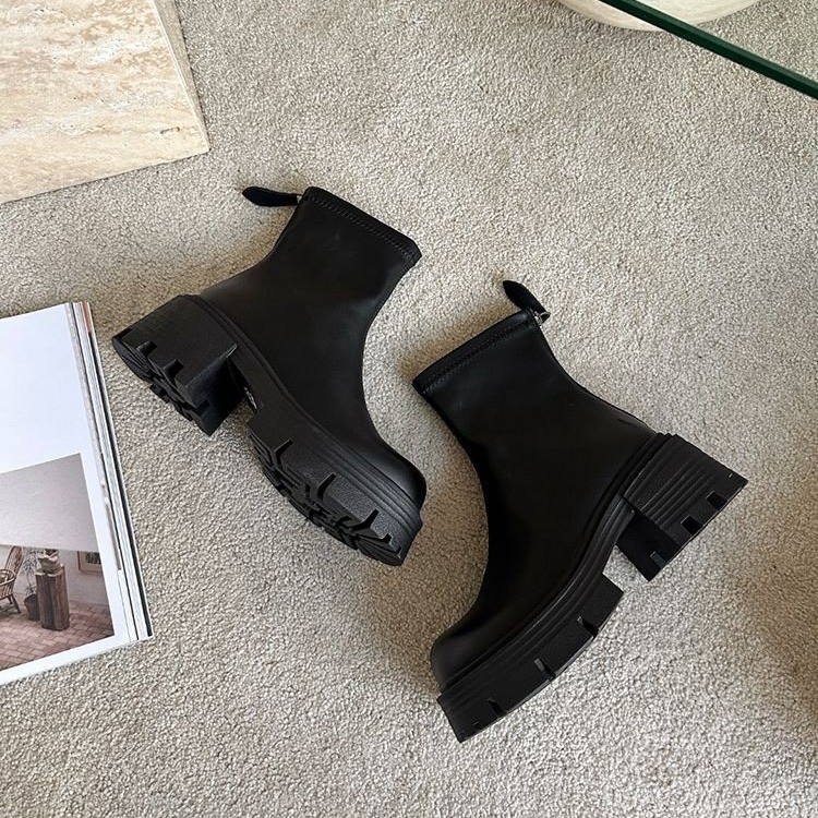 여성용 스트레치 마틴 부츠 2024 가을 신작 짧은 부츠 패셔너블하고 다재다능한 복고풍 슬리밍 작은 두꺼운 굽 슬림 부츠스토어 가기