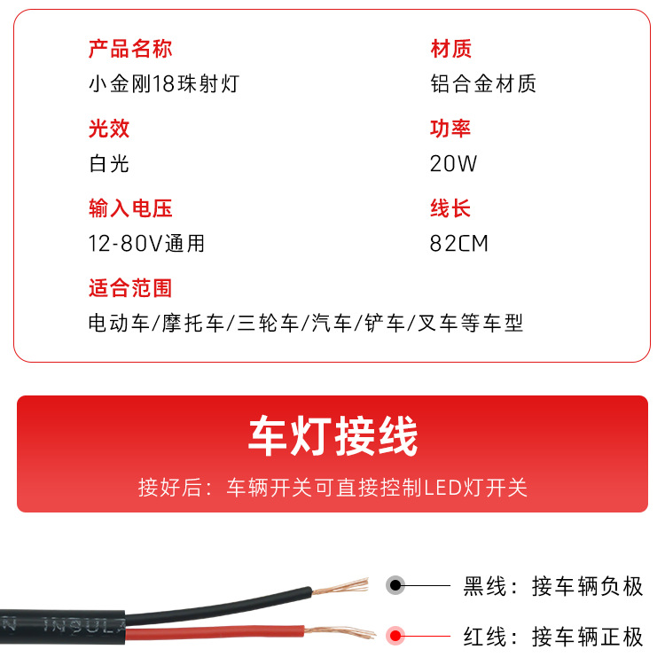 오토바이 18 구슬 킹 콩 스포트라이트 수정 외부 방수 슈퍼 브라이트 12v 60V 세발 자전거 강한 빛 LED 헤드 라이트스토어 가기