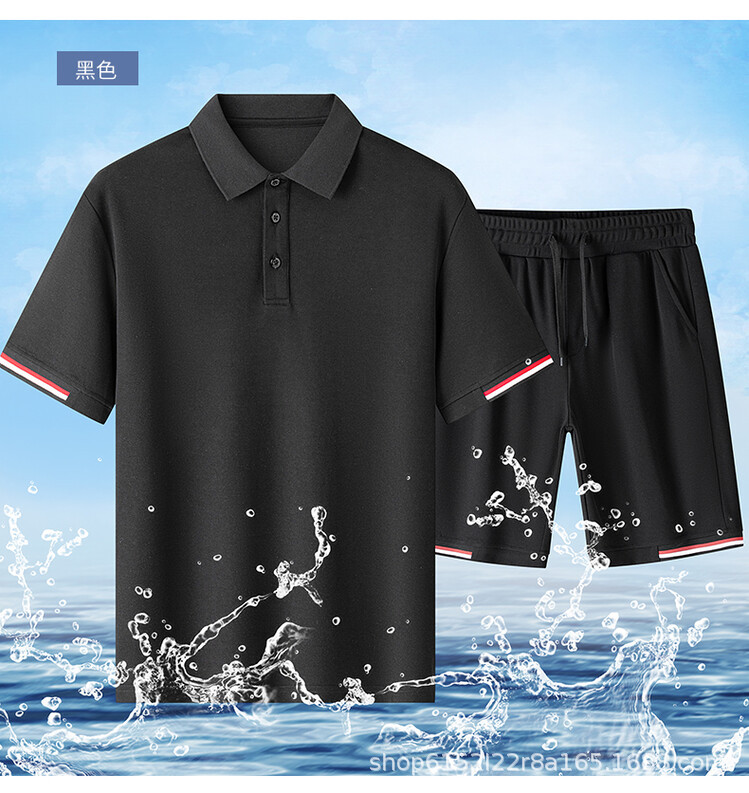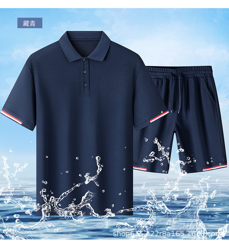 2024 여름 새로운 솔리드 컬러 옷깃 남자 반팔 아이스 실크 통기성 빠른 건조 땀 위킹 스포츠 POLO 남자 세트