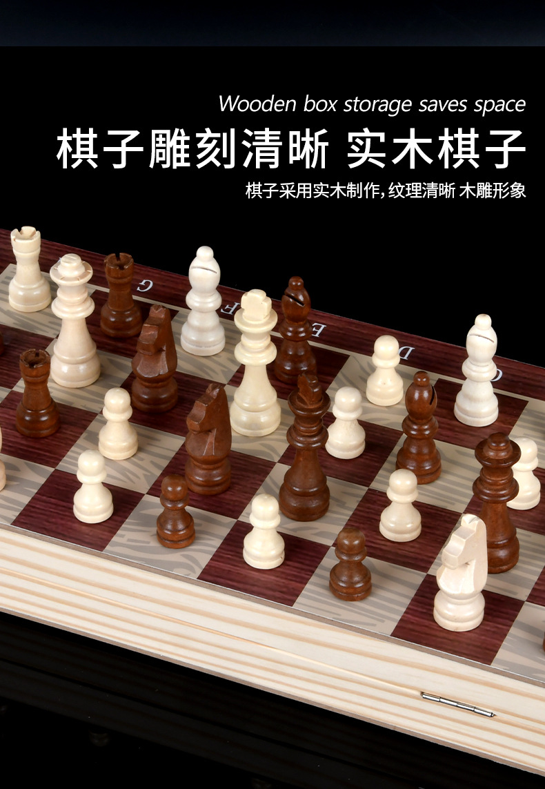 3 대 1 나무 단단한 나무 체스 체커 주사위 놀이 게임 접이식 휴대용 교육 체스 장난감스토어 가기