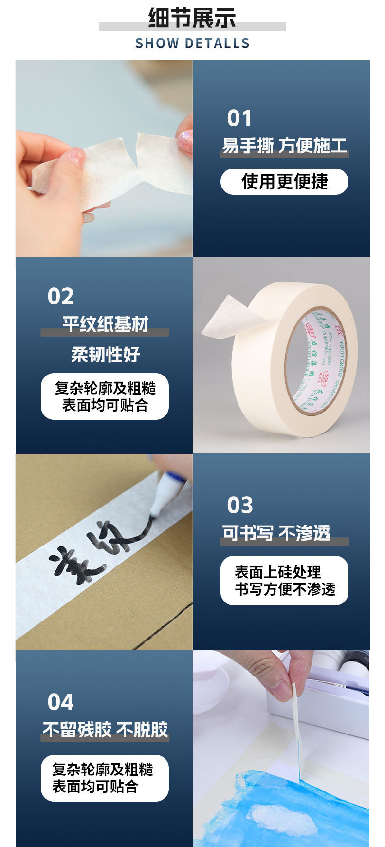 Yourijiu 높은 스틱 마스킹 종이 테이프 도매 껌 종이 스프레이 페인트 장식 장식 손으로 찢는 단면 접착 마스킹 종이스토어 가기