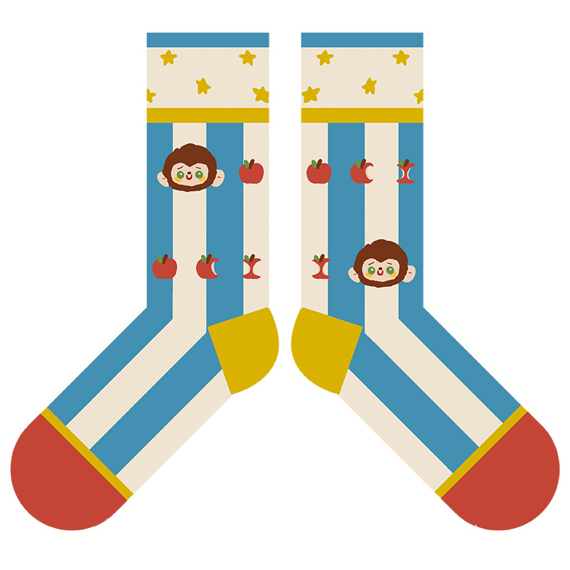 원래 브랜드 개인화 된 원숭이 스파클링 여름 양말 여성 만화 일러스트 패션 편지 중간 길이 양말 커플 코튼 양말