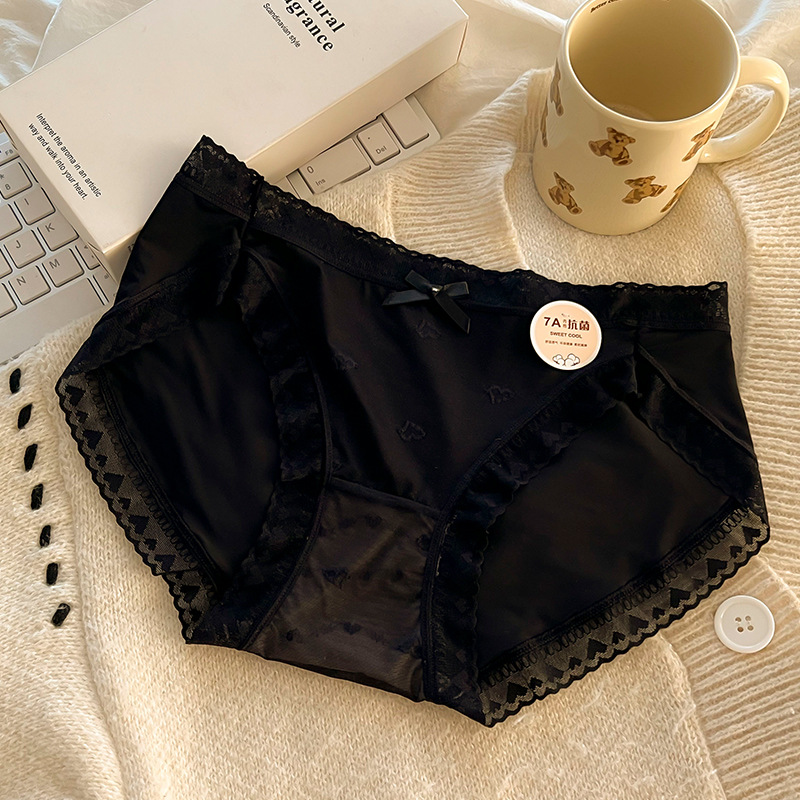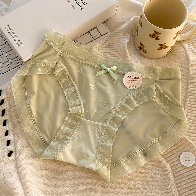 새로운 Traceless 7A 항균 순수 코튼 Crotch 달콤한 하이 스플릿 메쉬 거즈 소녀의 미드 허리 피부 친화적 인 브리프 여성 속옷