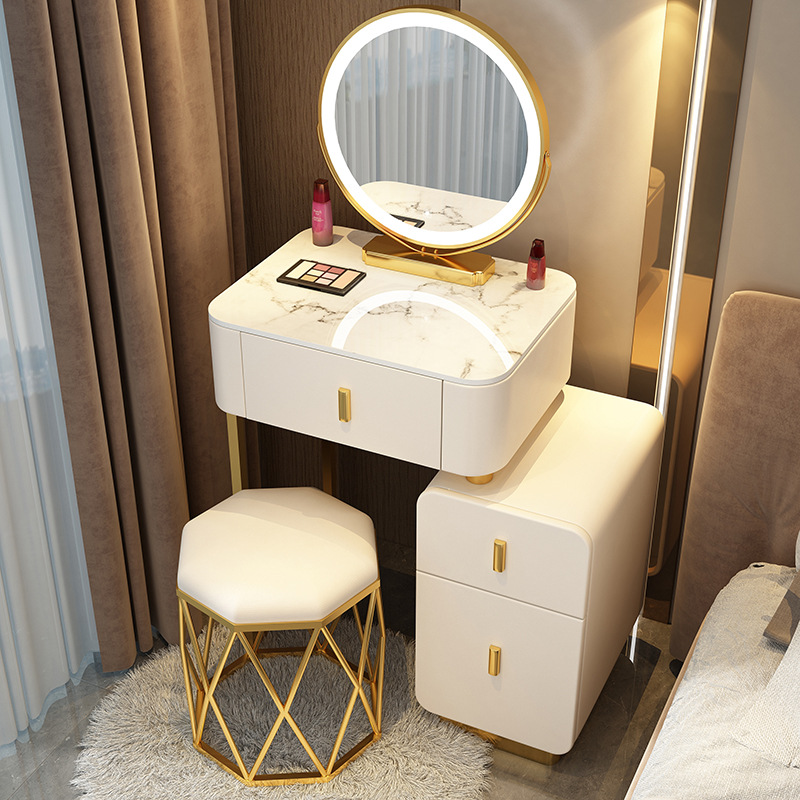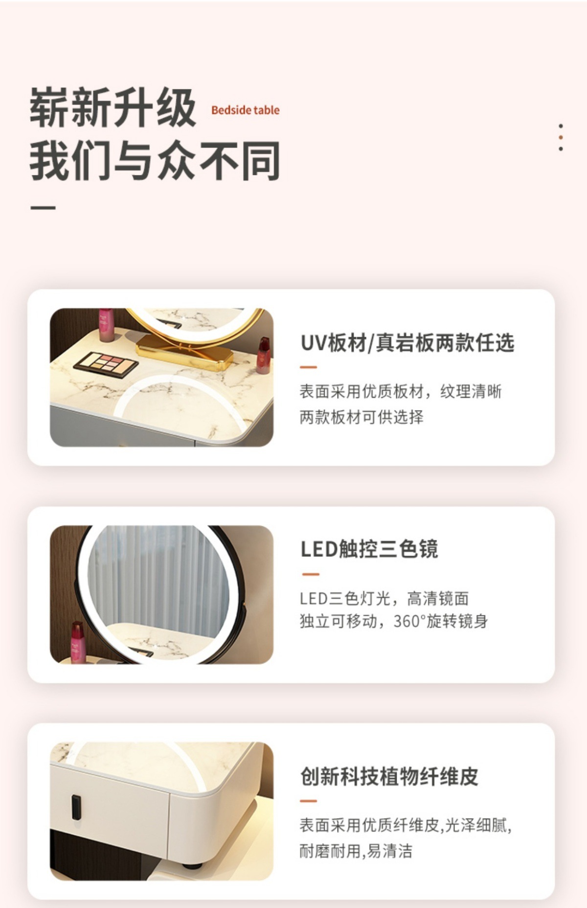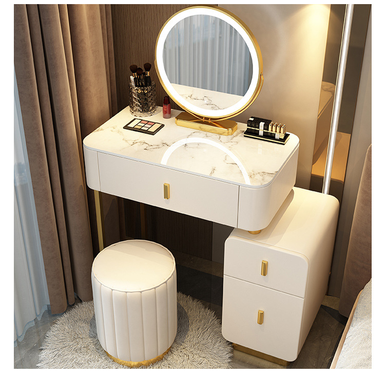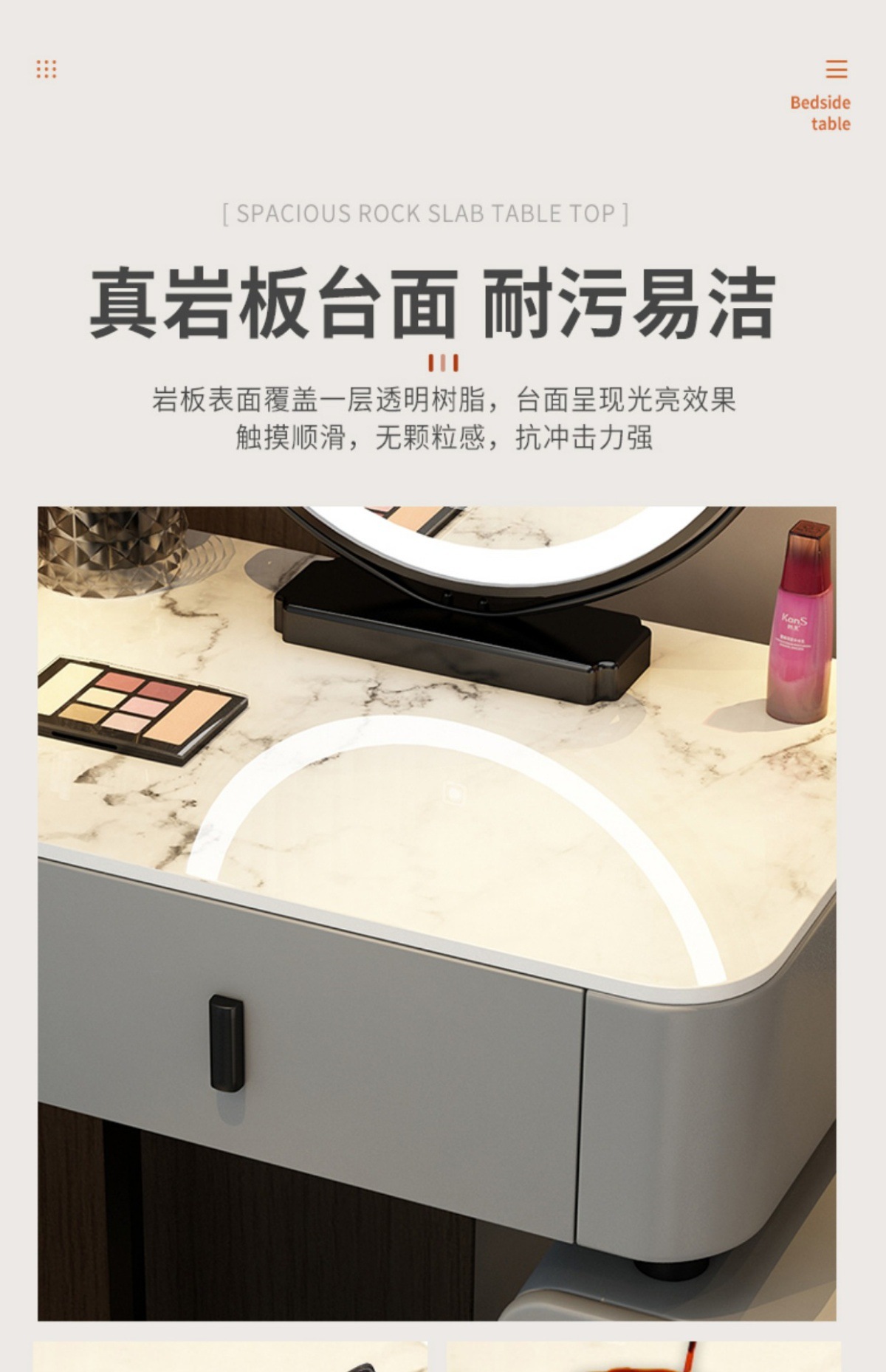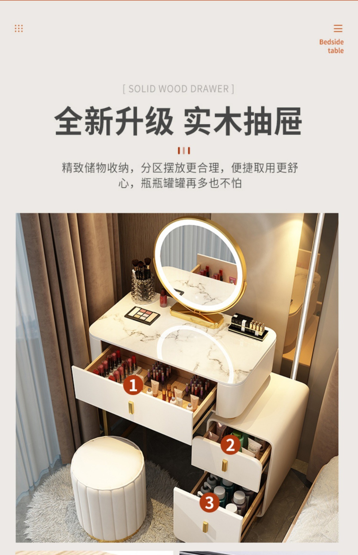 단단한 나무 바위 드레싱 테이블 침대 옆 저장 내각 통합 여성 침실 현대 간단한 메이크업 테이블 작은 아파트 다기능