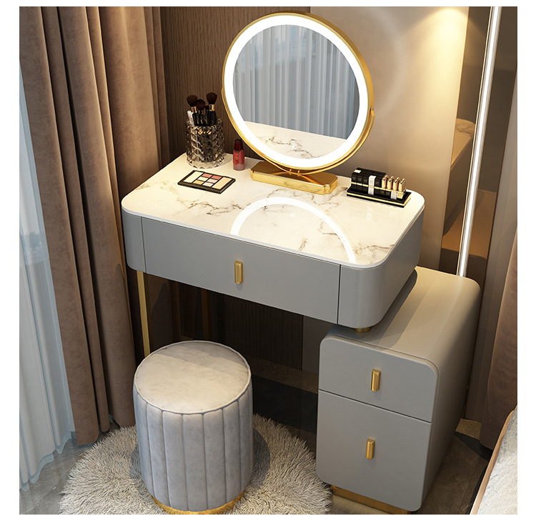 • JH 소형 아파트 그레이 골드 70CM 테이블 + 캐비닛 + 거울 + 리얼 슬레이트 데스크탑 + 완전한 세트