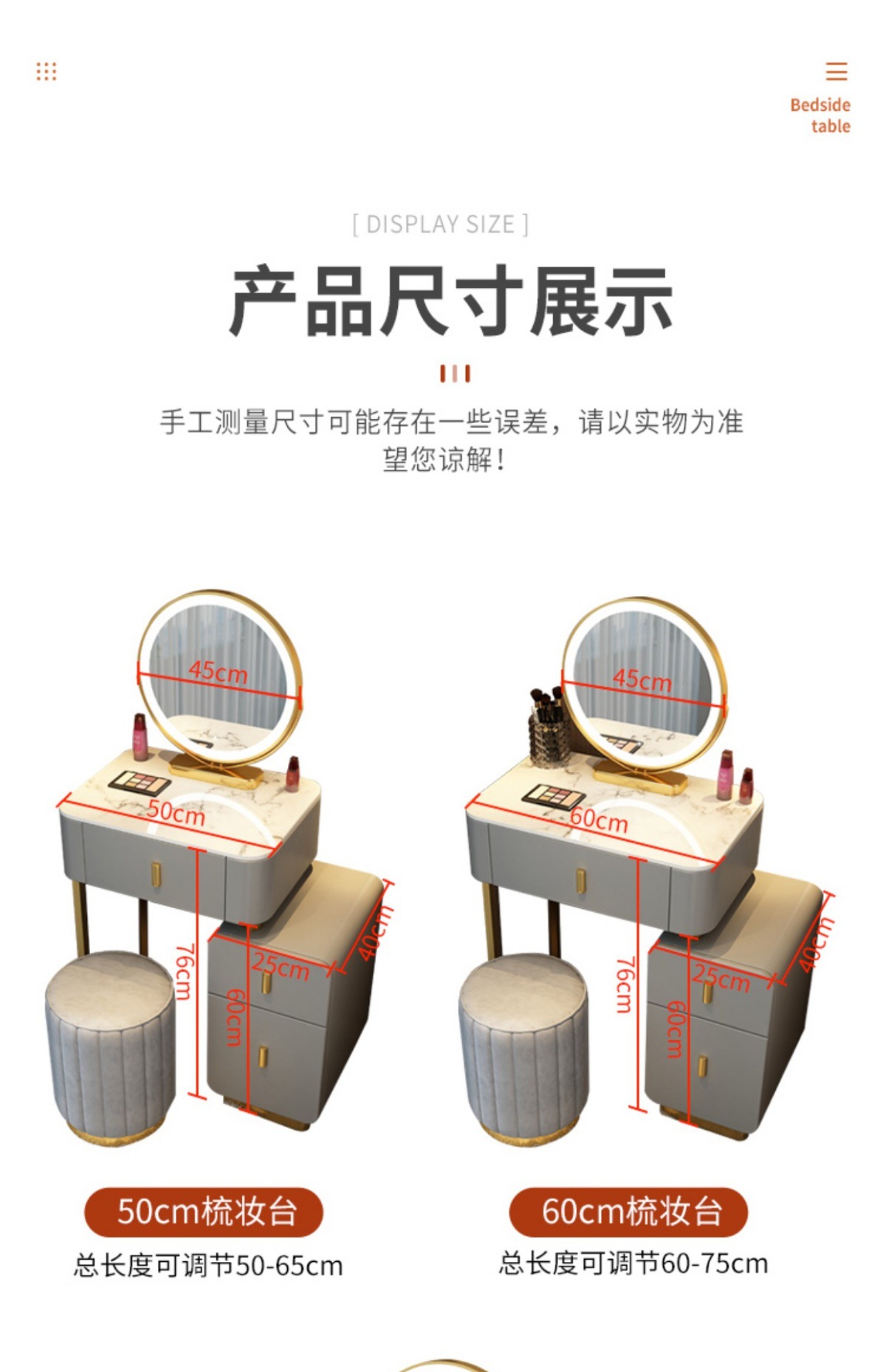 • JH 소형 아파트 그레이 골드 50CM 테이블 + 캐비닛 + 거울 + 리얼 슬레이트 데스크탑 + 완전한 세트
