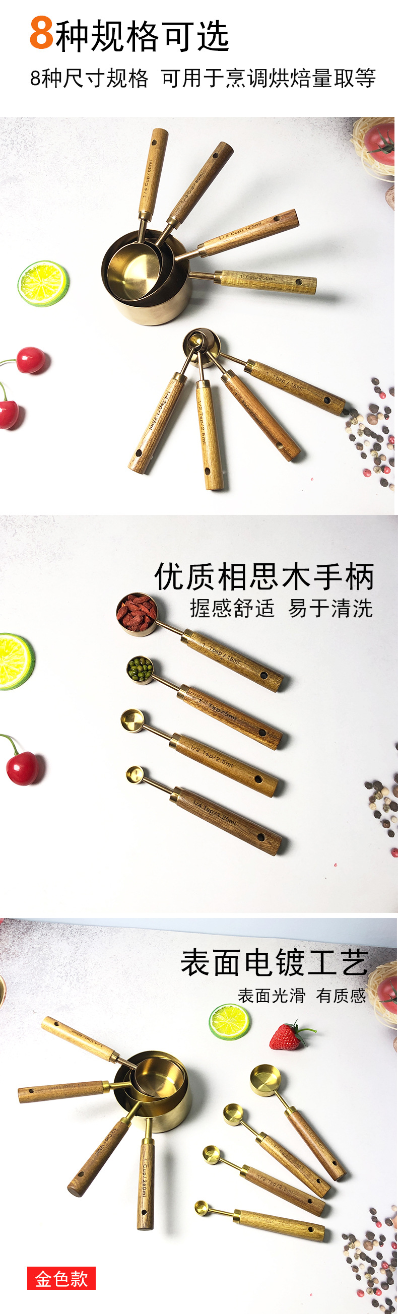 • 로즈골드 계량컵 계량스푼 8종세트-아카시아나무