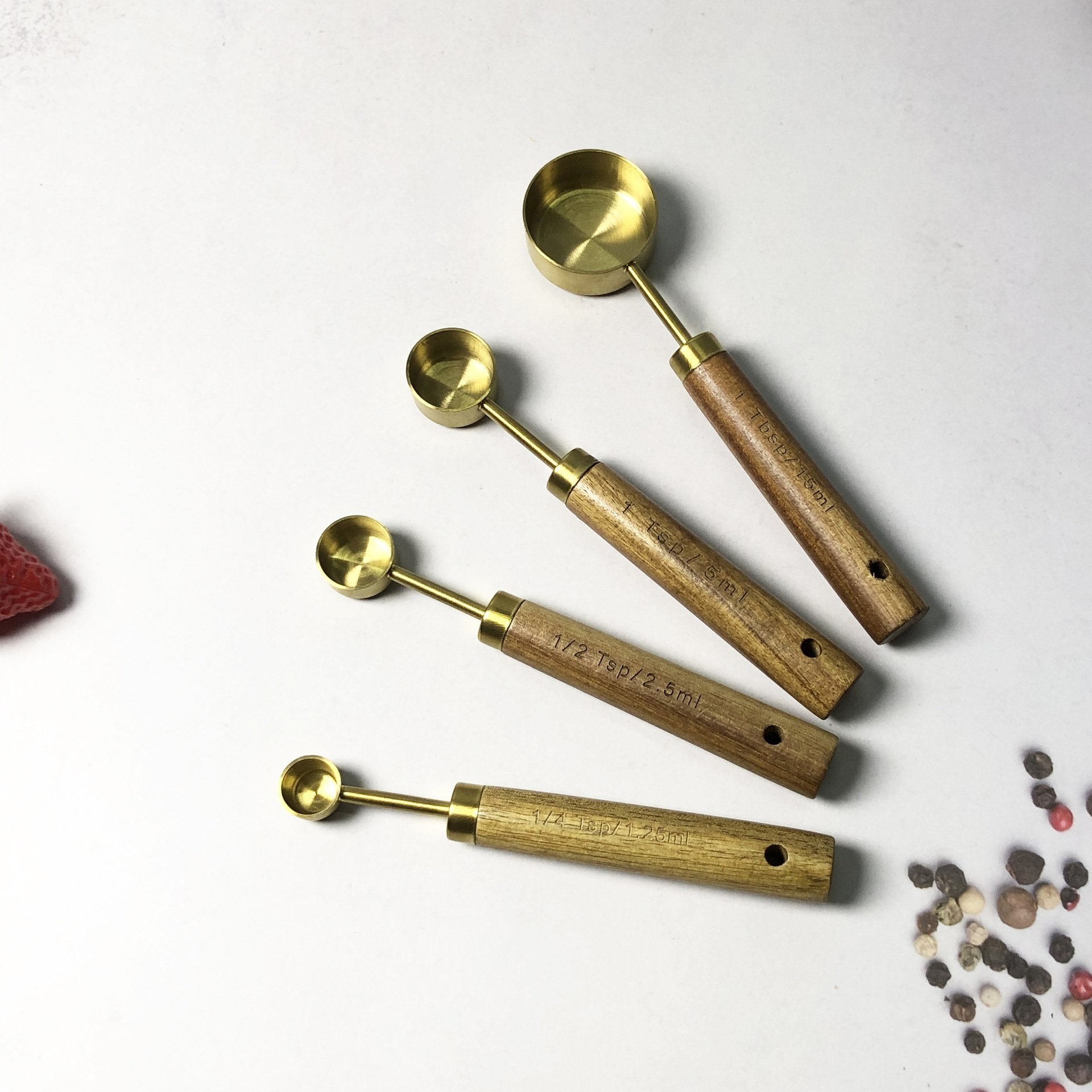 • 로즈골드 계량스푼 4종세트-아카시아나무