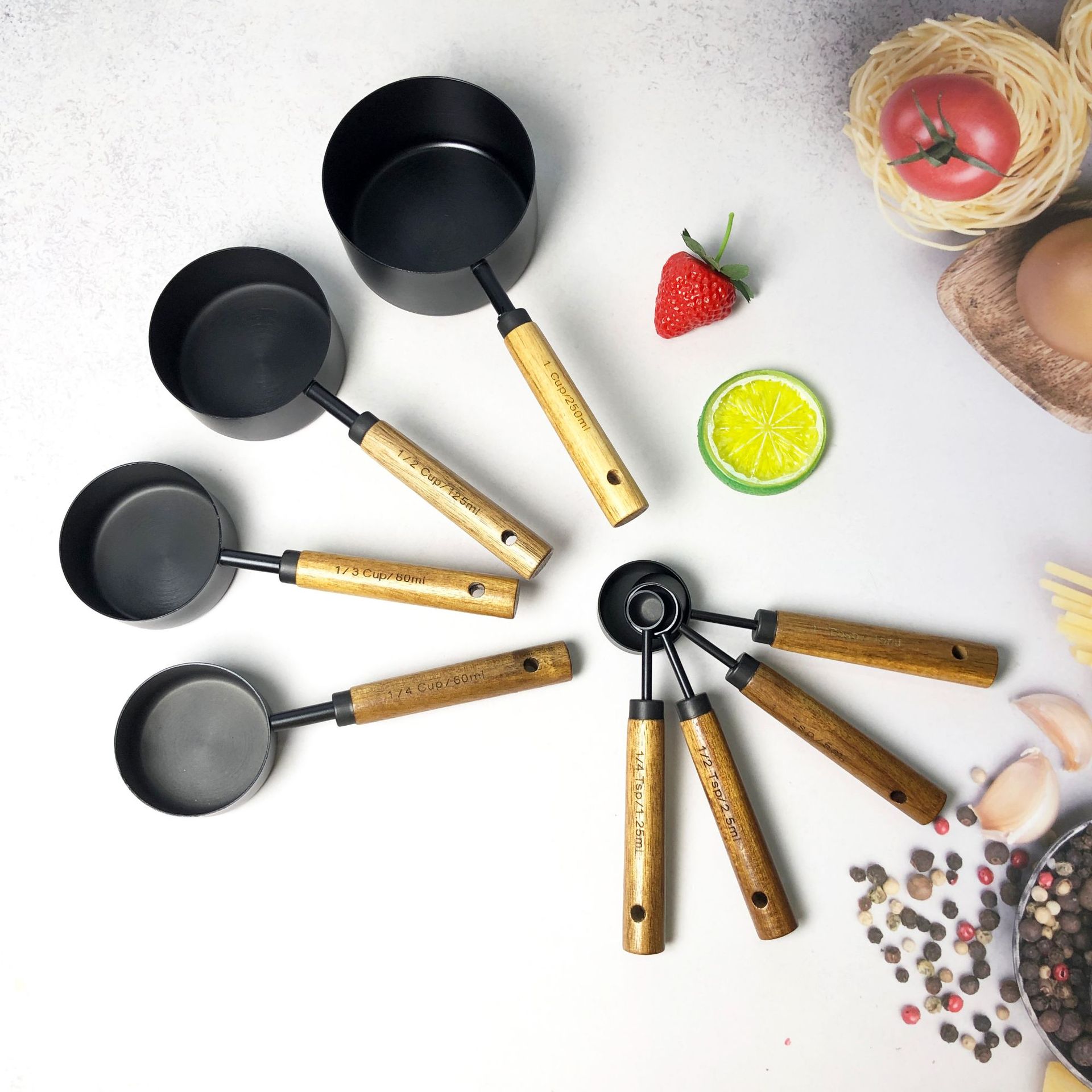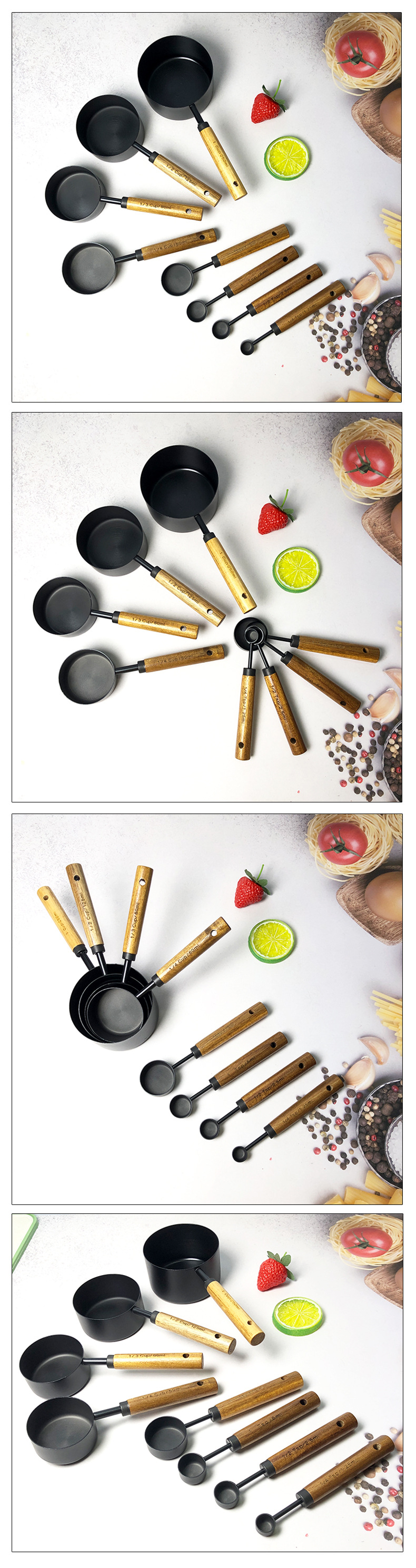 • 블랙 계량컵 계량스푼 8종세트-아카시아나무