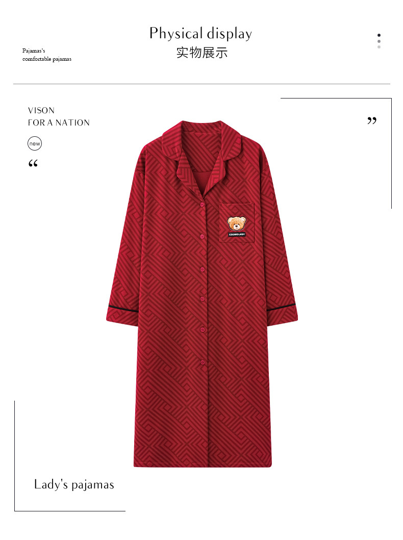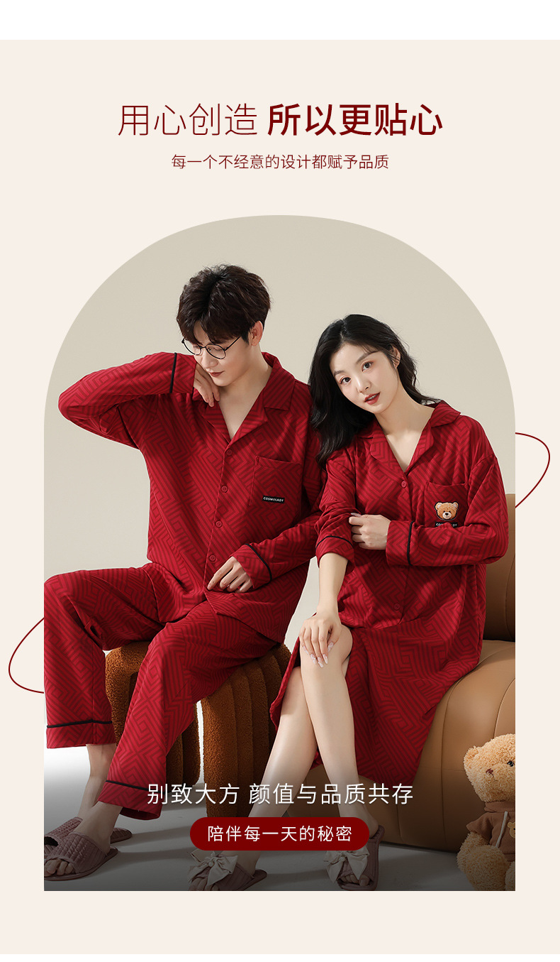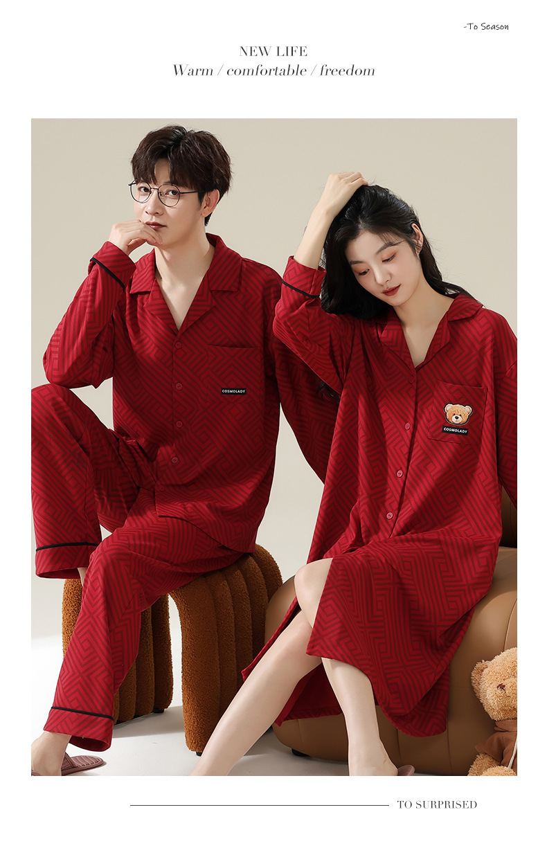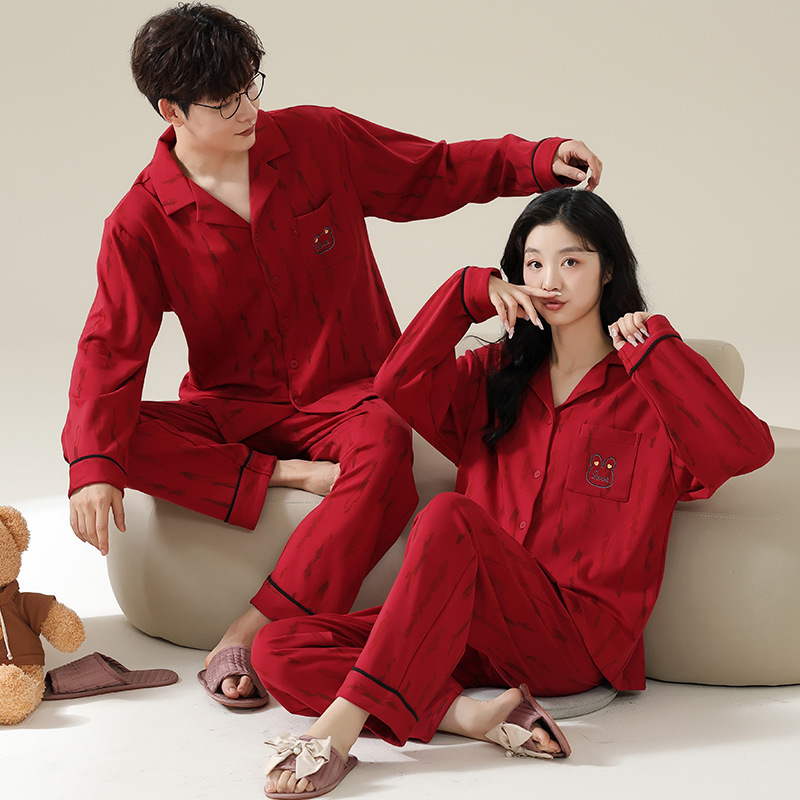 모조 코튼 커플 잠옷 여성의 가을 붉은 결혼식 남자 홈 옷 봄과 가을 로맨틱 세트 올해의스토어 가기