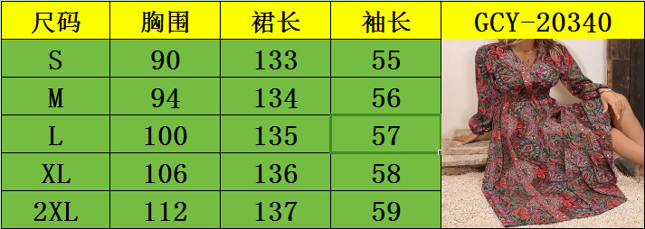 2023 유럽과 미국 국경 아마존 독립 역 여성의 가을과 겨울 새로운 기질 v-neck 프린트 긴 소매 원피스스토어 가기