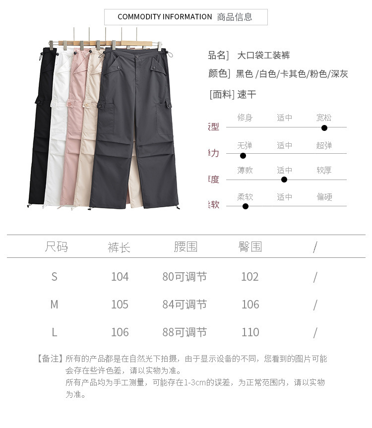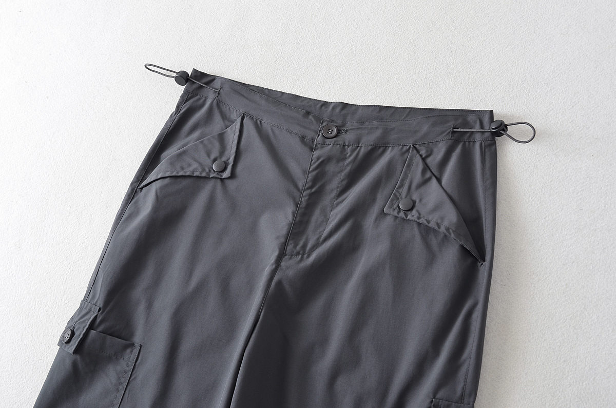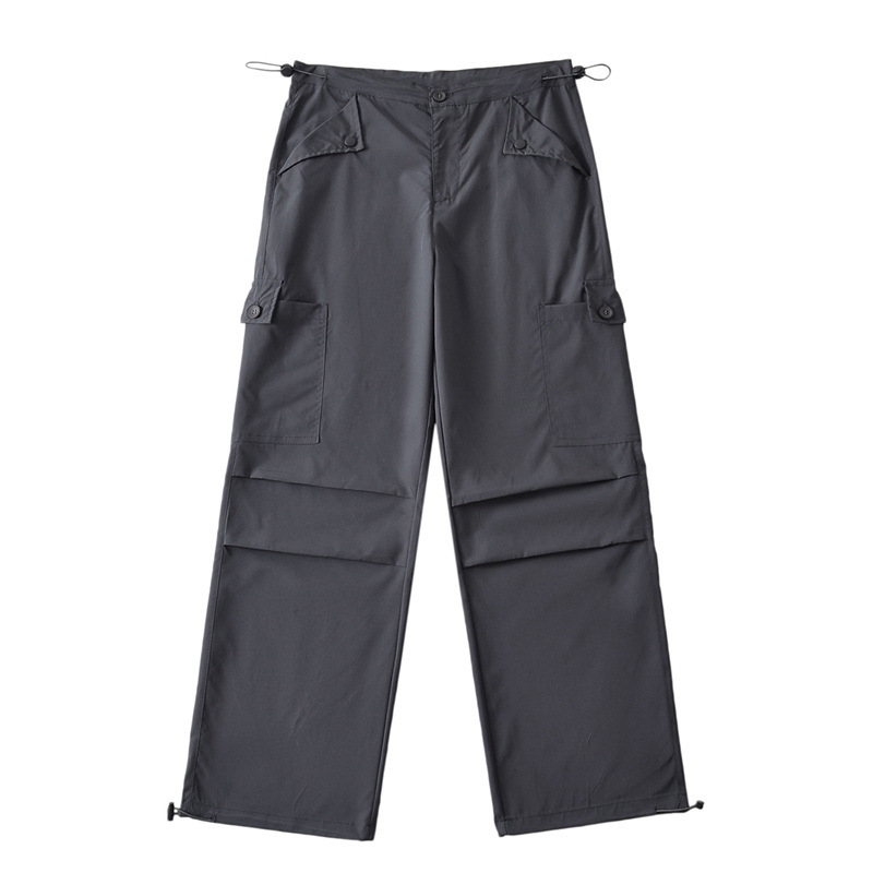 아메리칸 스타일 Ins 유행 하이 스트리트 대형 포켓 주름 바지 여성용 가을 느슨한 스트레이트 퀵 건조 충전 낙하산 바지