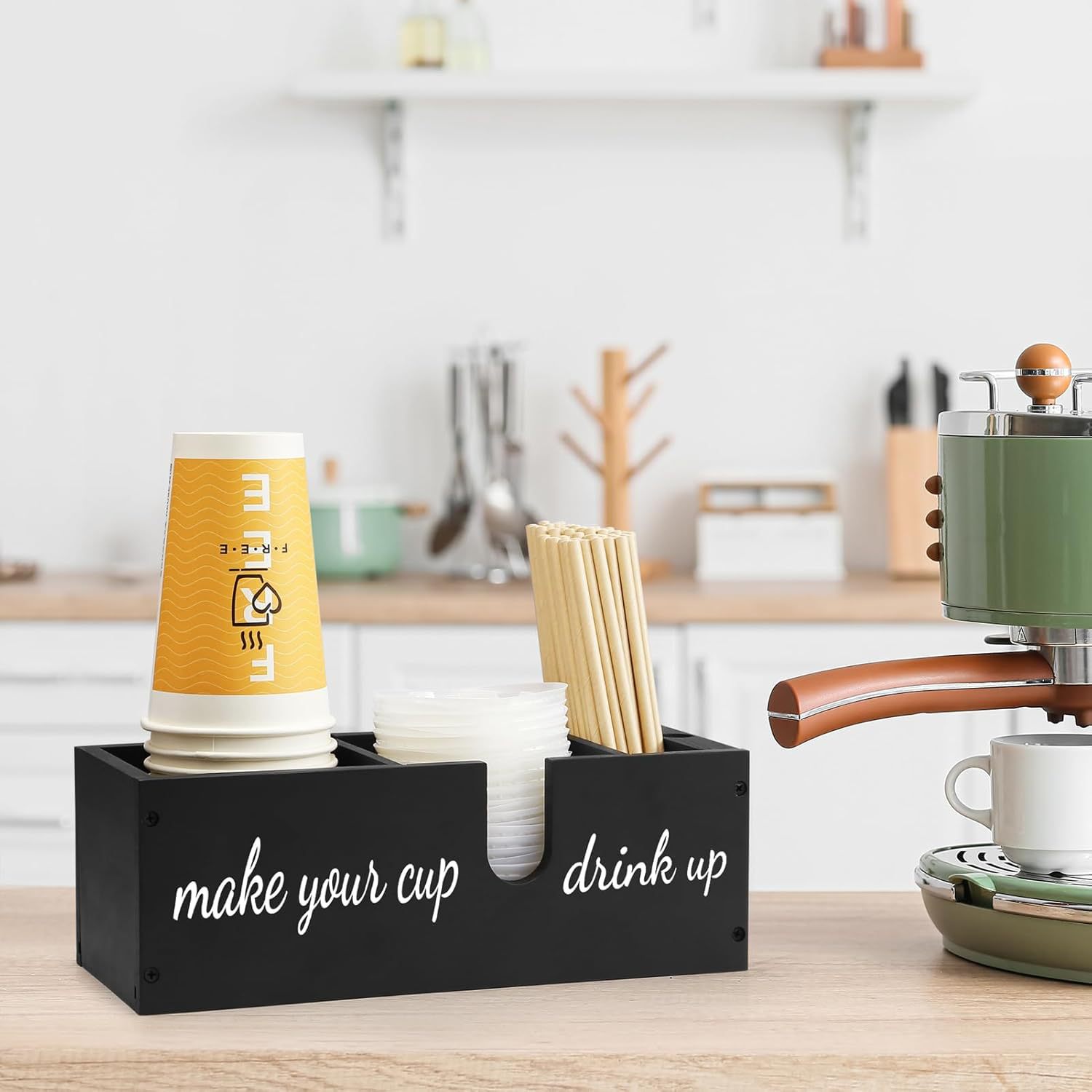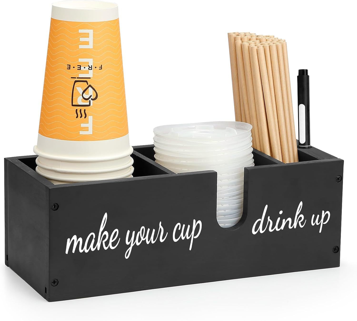 나무 검은 색 멀티 그리드 커피 캡슐 저장 상자 커피 숍 일회용 종이 컵 빨대 컵 단단한 나무 저장 상자스토어 가기