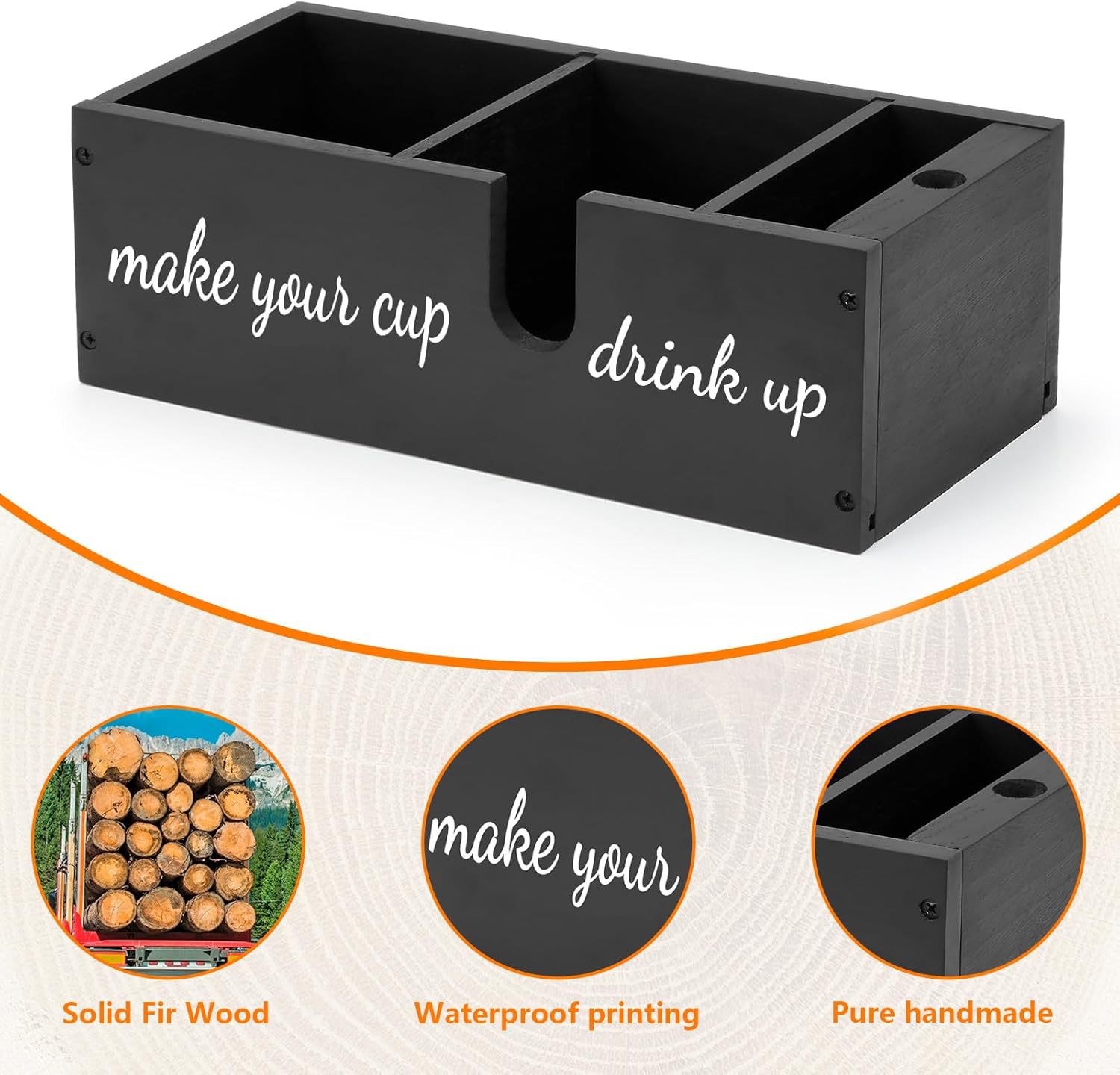 나무 검은 색 멀티 그리드 커피 캡슐 저장 상자 커피 숍 일회용 종이 컵 빨대 컵 단단한 나무 저장 상자