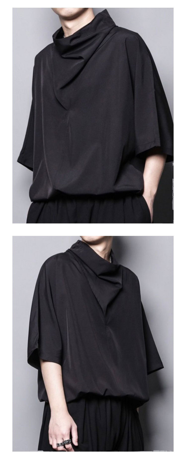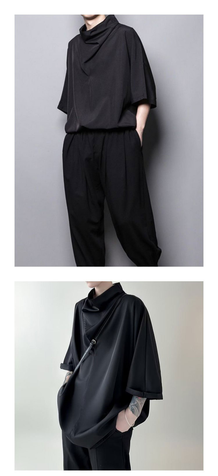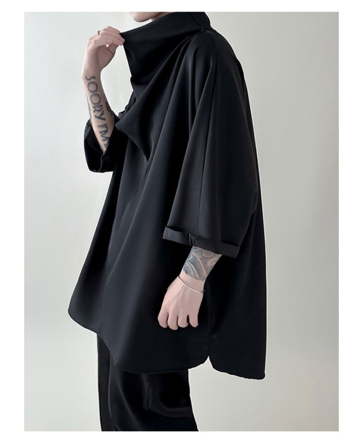 남학생을 위한 다크 스타일의 푸드 칼라 반팔 셔츠, 여름 불규칙 캐주얼 디자인 틈새 7부 소매 셔츠