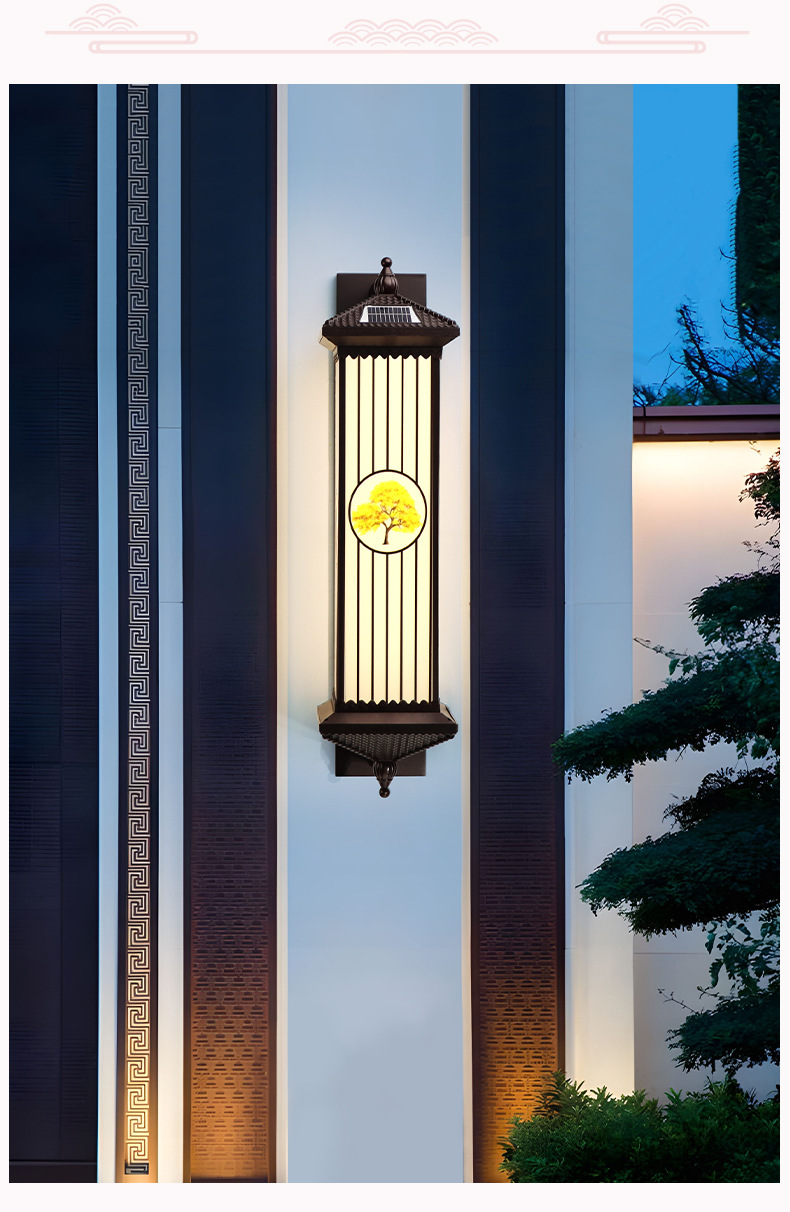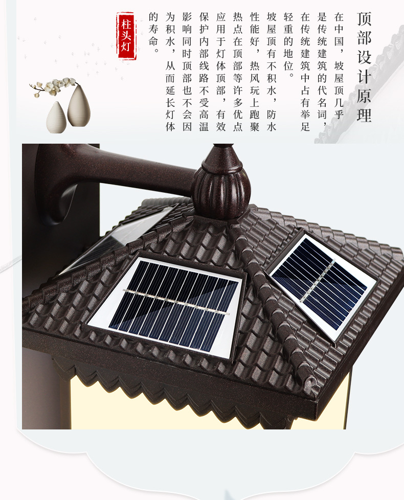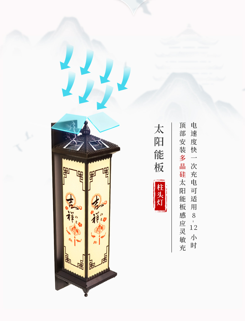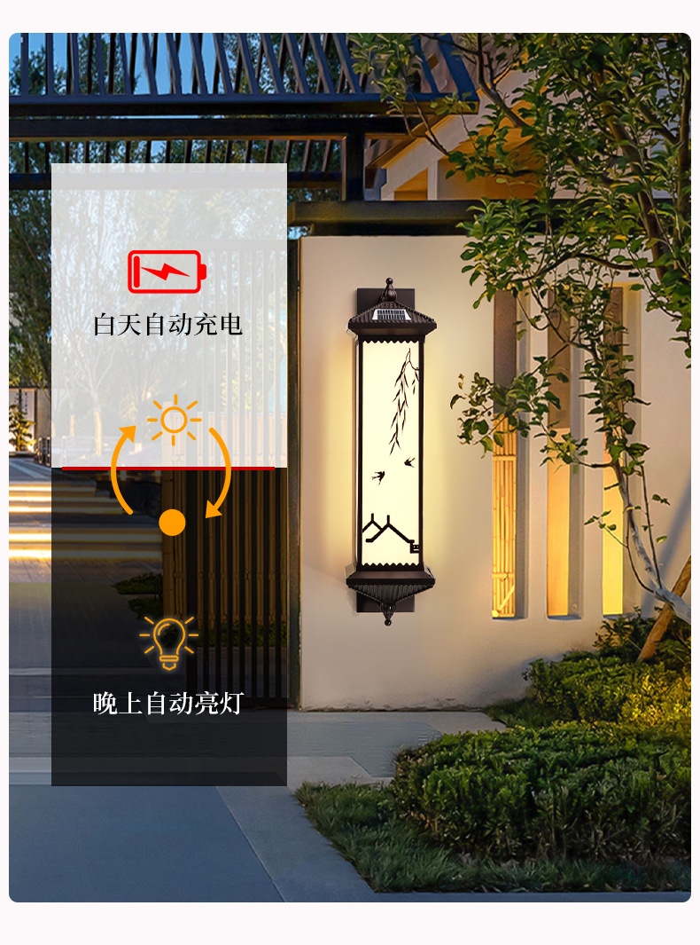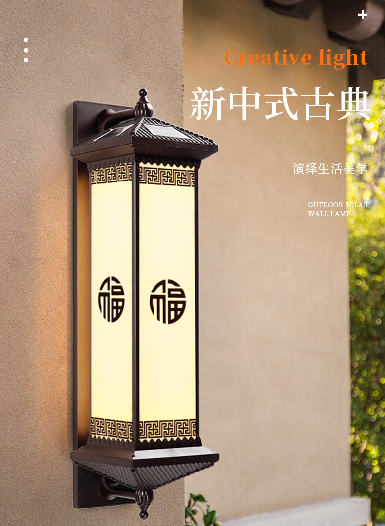 태양 벽 램프 야외 발코니 안뜰 게이트 칼럼 램프 정원 벽 램프 새로운 중국 스타일 빌라 통로 테라스 램프