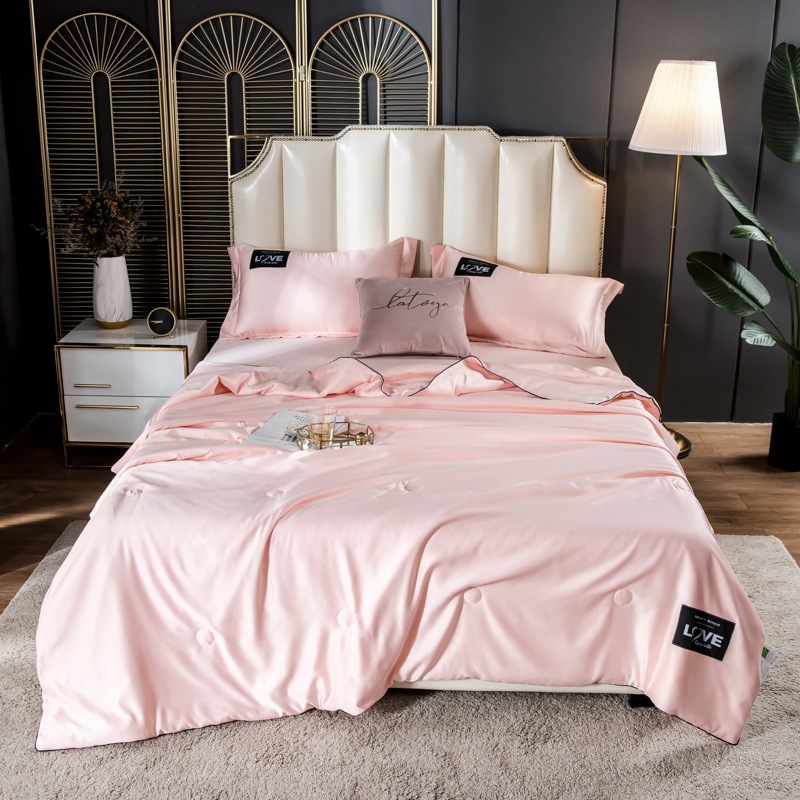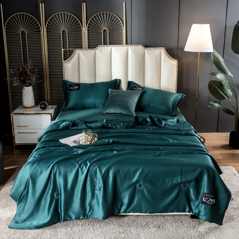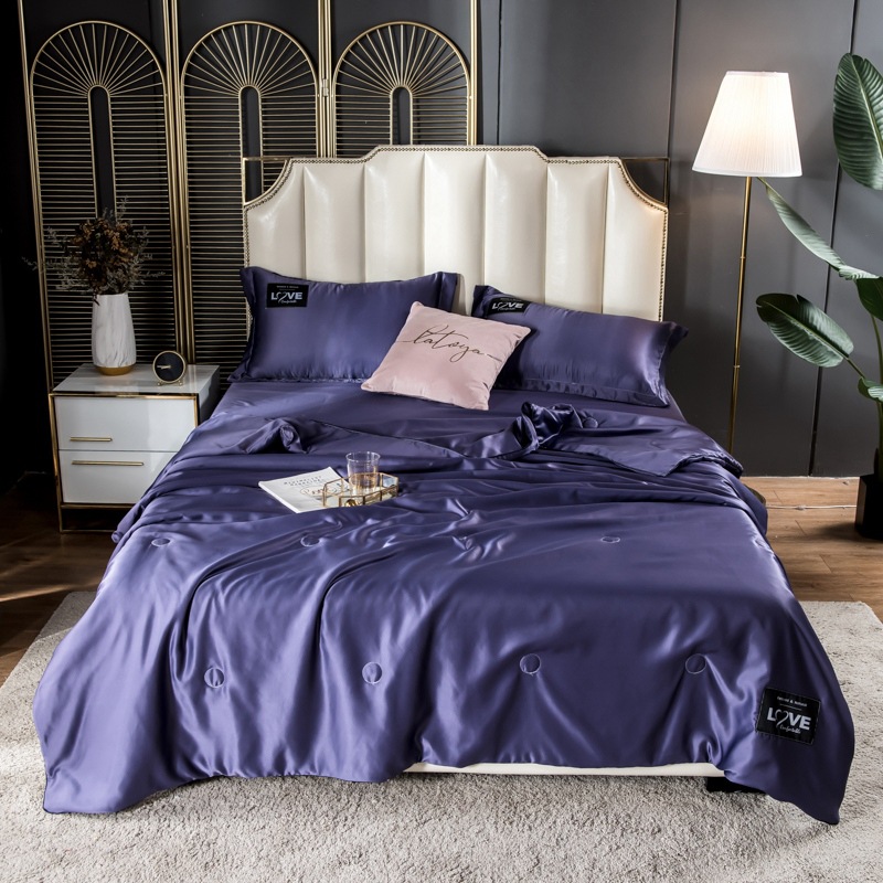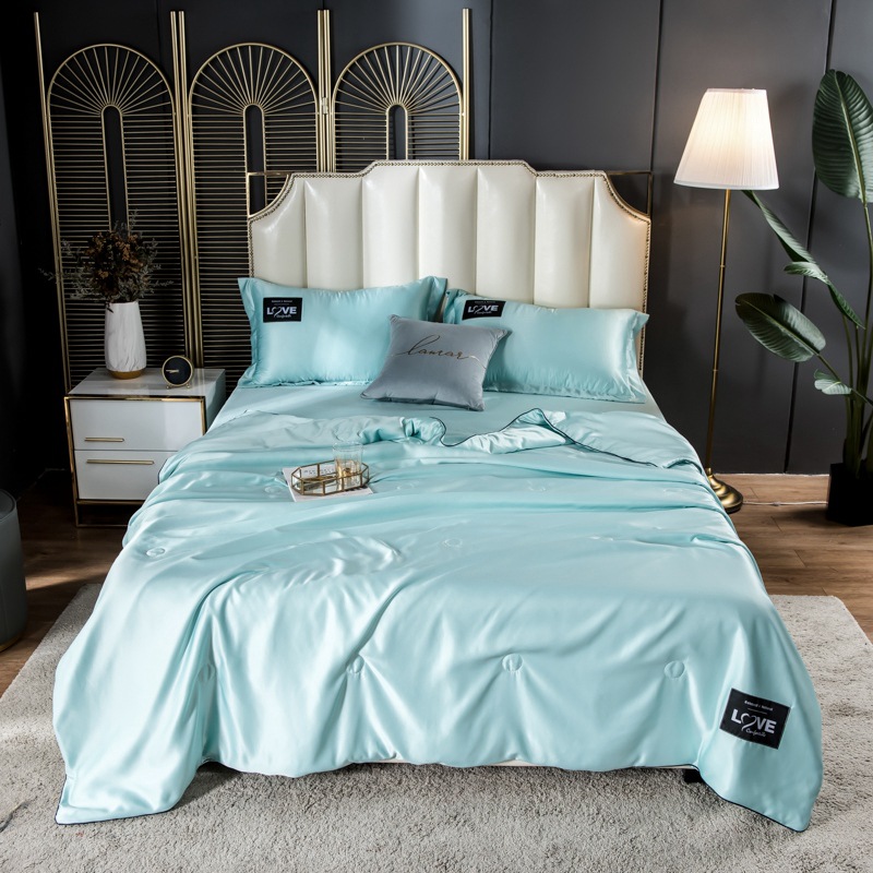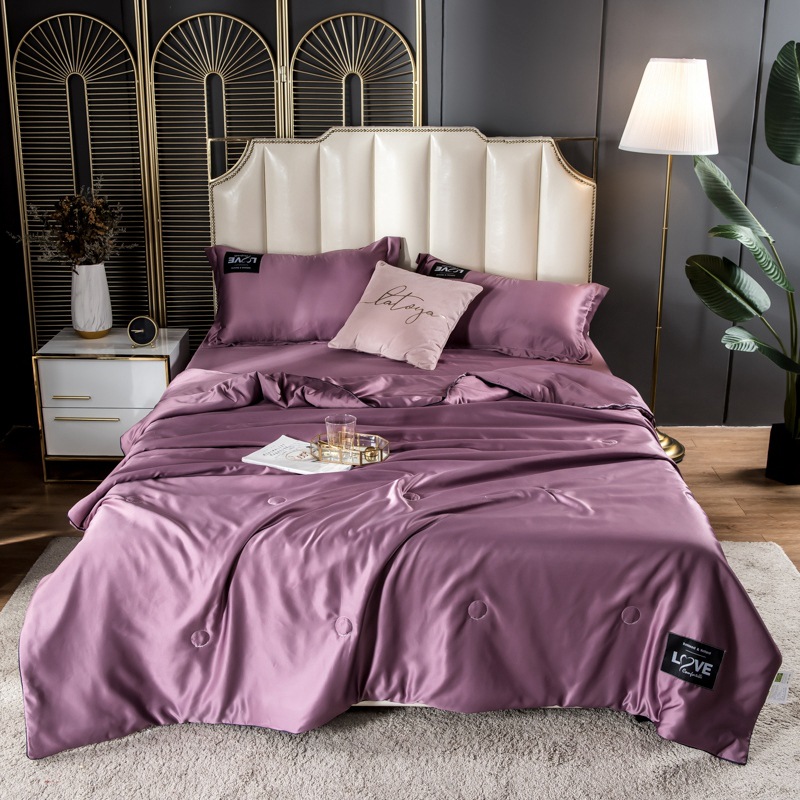 텐셀 시원한 느낌 얼음 실크 여름 씻은 실크 여름 시원한 에어컨 퀼트 솔리드 컬러 도매 4 피스 세트 침대 모자 1.5 침대스토어 가기
