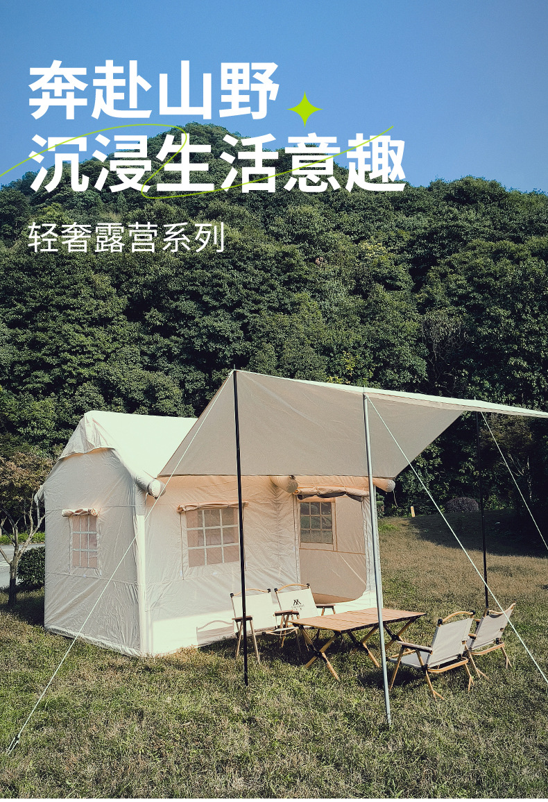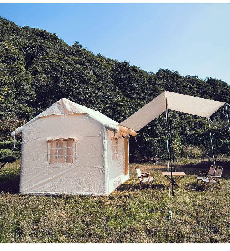 Mu Xi 크로스보더 하우스형 풍선 텐트, 가족 여행용, 설치가 필요 없는 3~4인용 캠핑 한국식 오두막 텐트스토어 가기