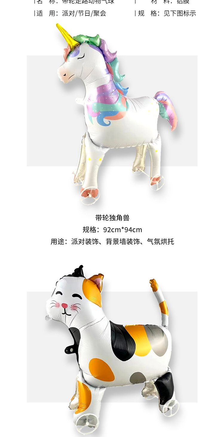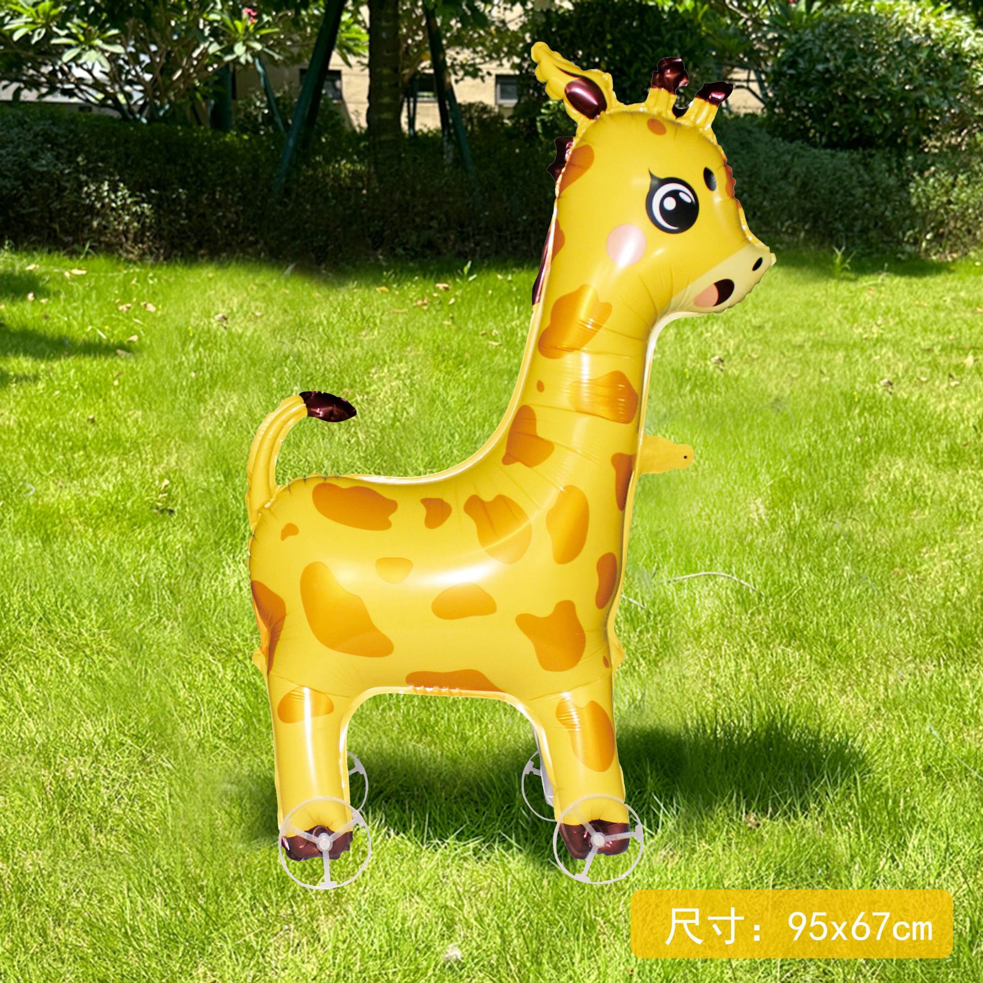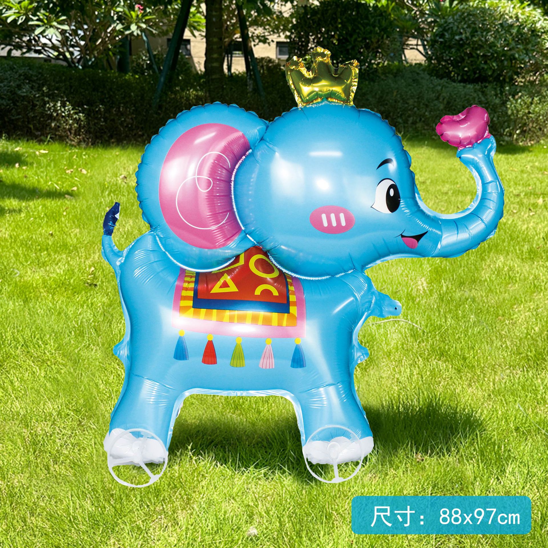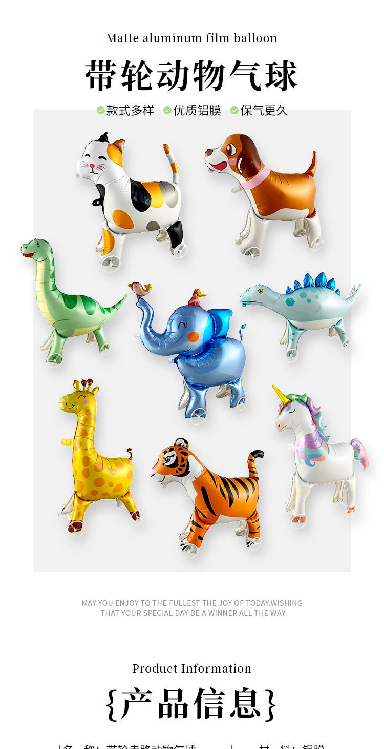 국경 새로운 바퀴 걷는 견인 동물 만화 장난감 알루미늄 필름 풍선 지상 푸시 파티 장식 어린이 귀여운스토어 가기