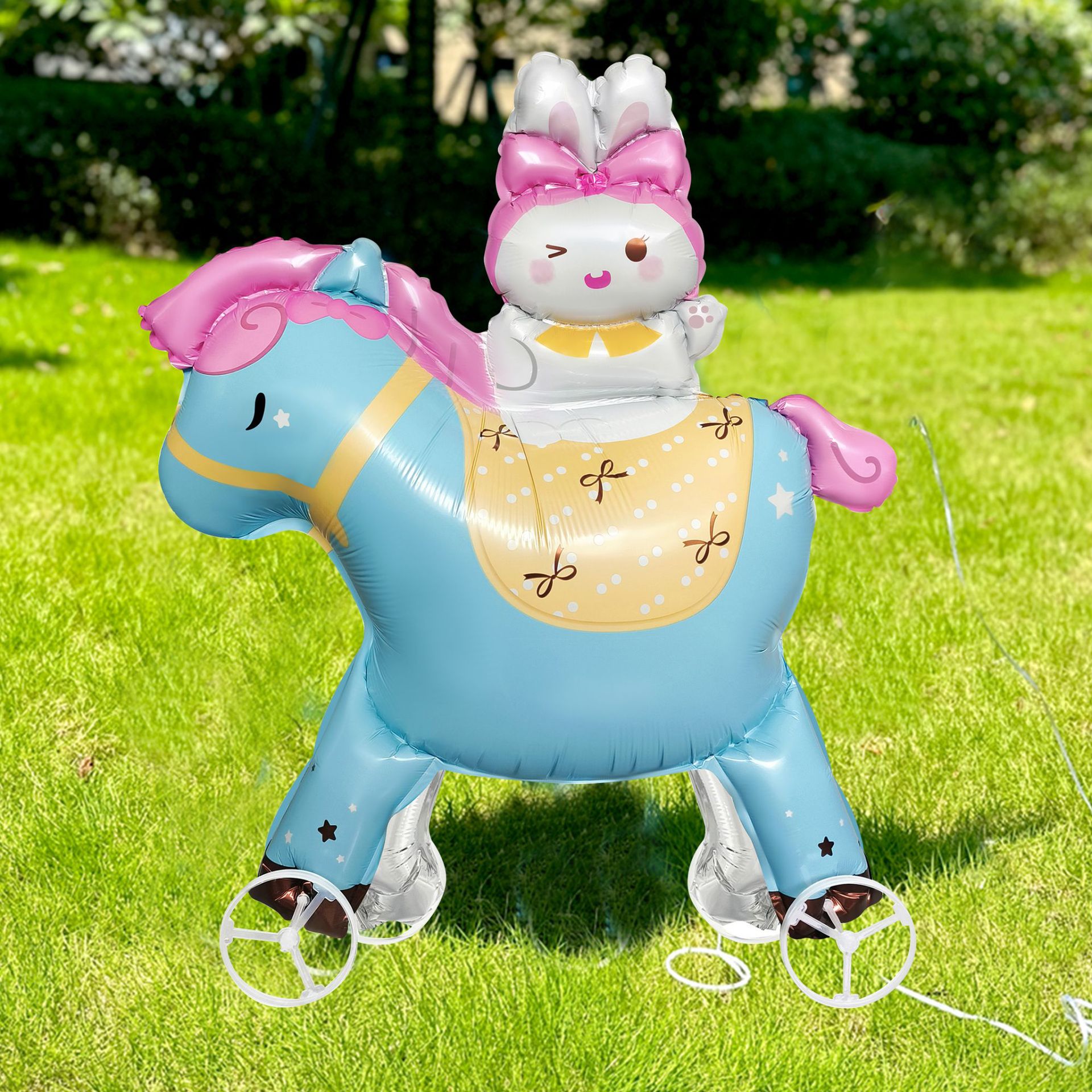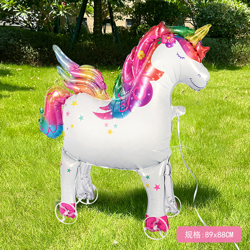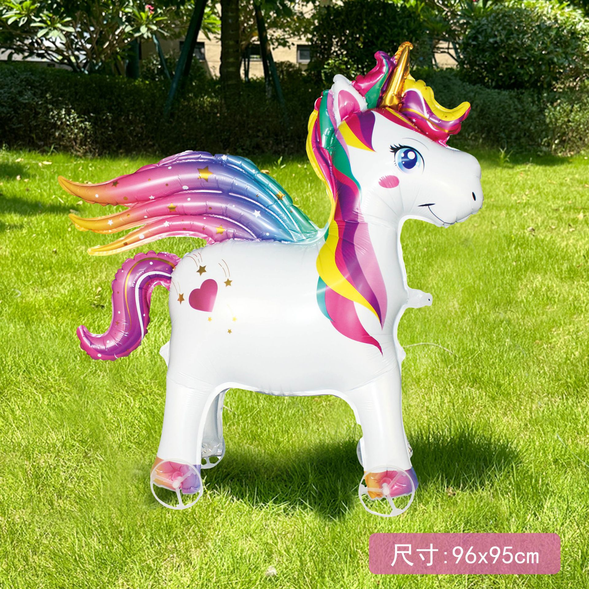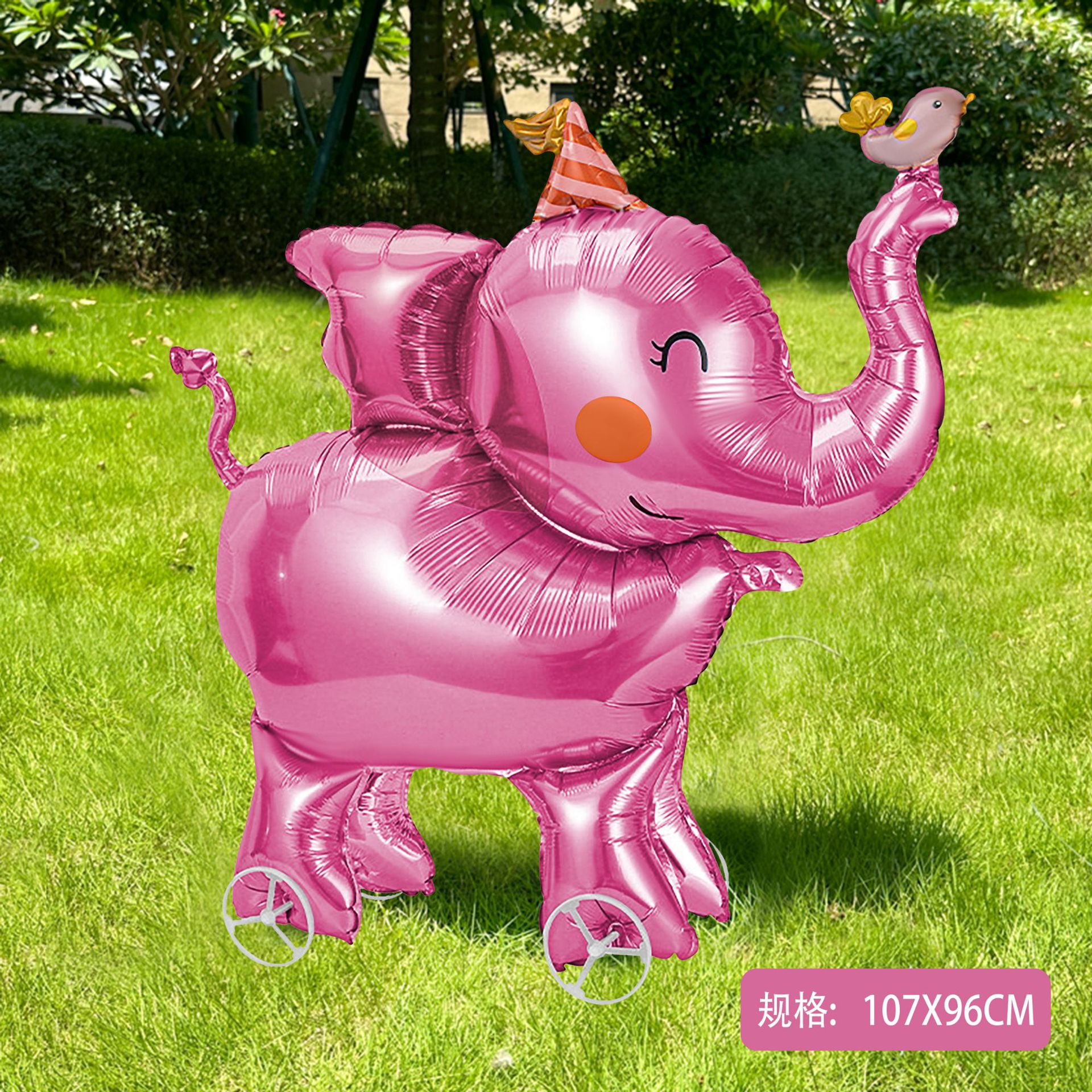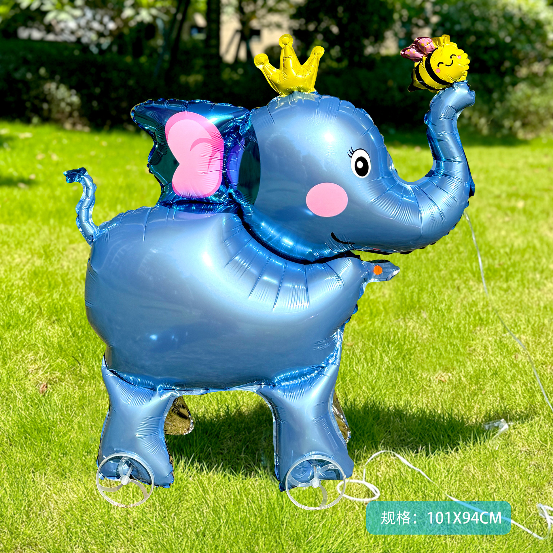 국경 새로운 바퀴 걷는 견인 동물 만화 장난감 알루미늄 필름 풍선 지상 푸시 파티 장식 어린이 귀여운스토어 가기